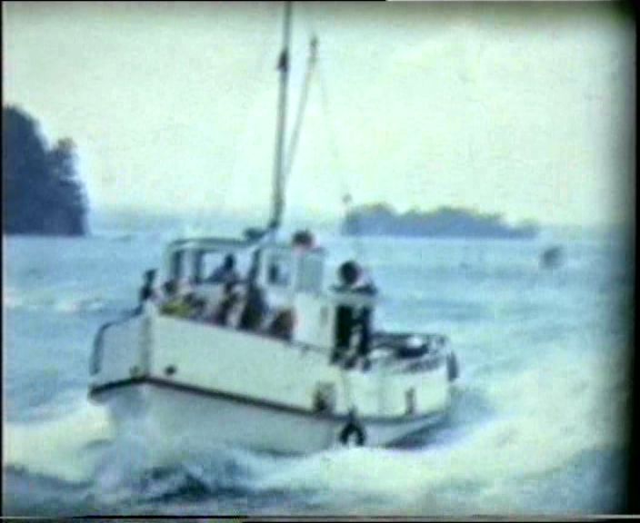 Have an image of Claude M., at the helm I skimmed off one of my 8mm now video remade films of her, racing against his great business competitor & friend, Harry Julian, at that time, in one of the Julian’s tugs, in the Launch race, at the Bon Accord Harbour K.I.Y.C. regatta at Kawau Island, New Year’s Day in the earlyish 1950s, also 1 in Bream Bay, many years before, when owned & Skippered by a Mr. Patterson. — KEN R