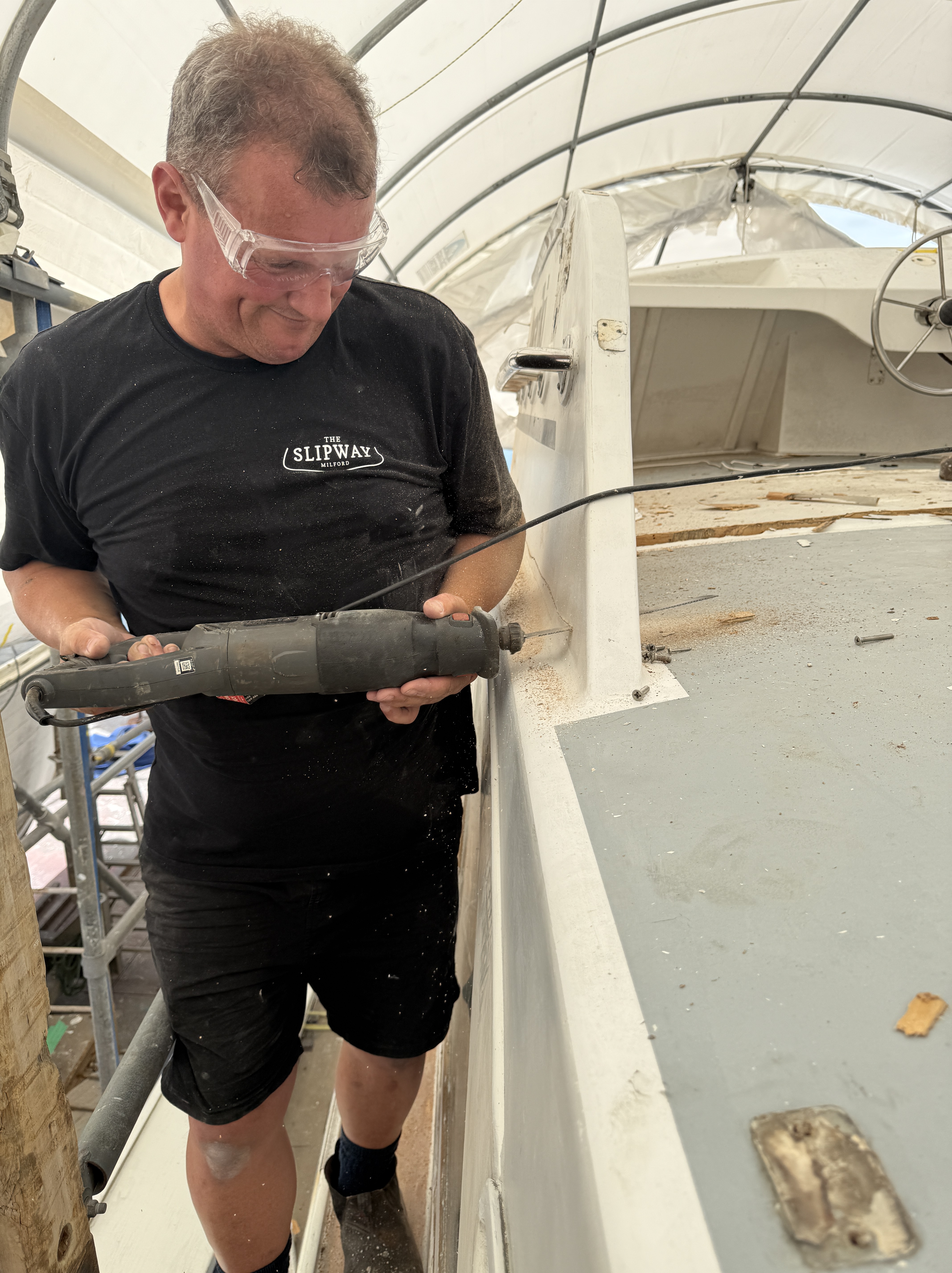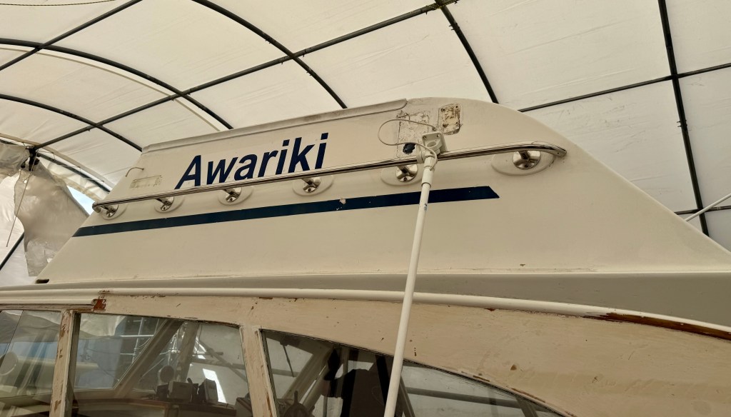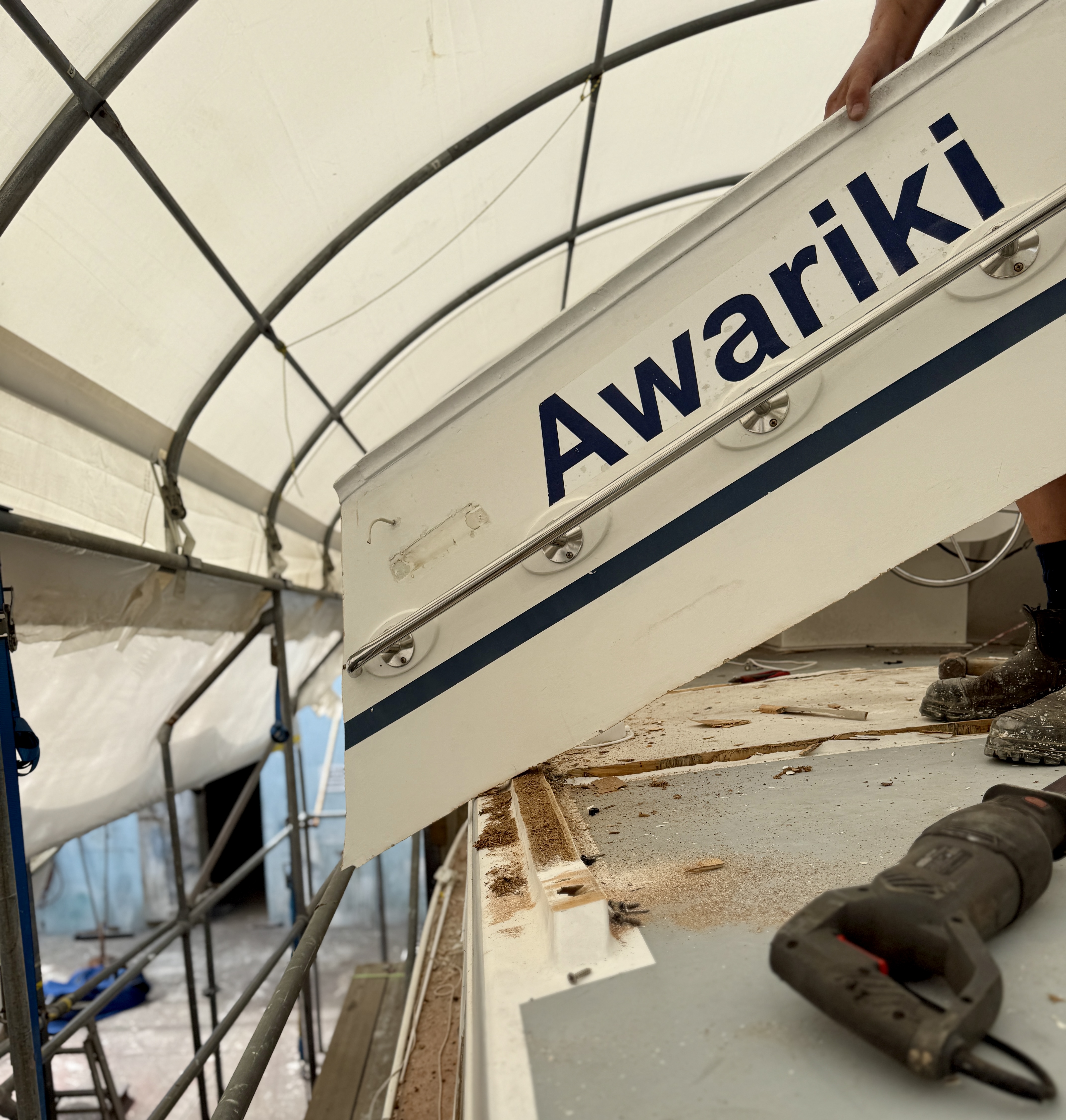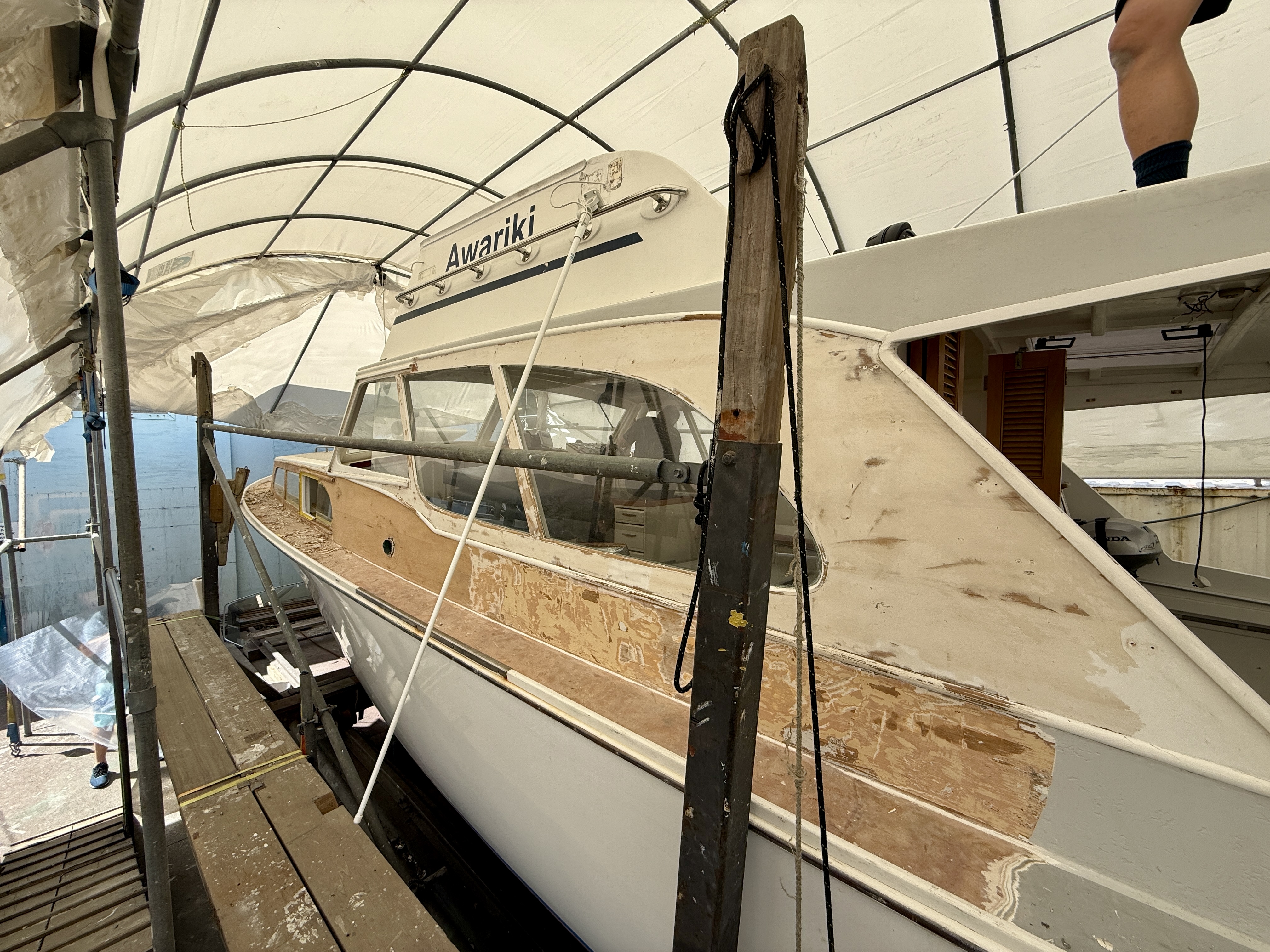Fast forward to Monday night when I get an email asking about my thoughts on removing it. The launch was hauled out at the Slipway Milford and the crew there had been not so subtly suggesting to the owners to give the green light on removing it. The hardest working crew member at the yard – Maddie Malcom did some photo-shopping to a photo I took of AWARIKI in Chamberlain Bay (2nd one above) and the owners were sold 🙂