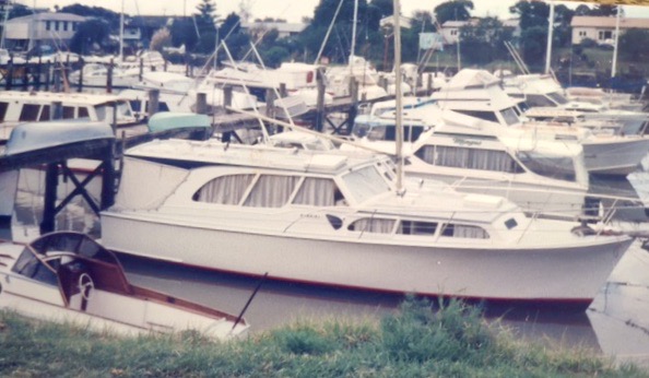 INPUT ex KERRY LILLEY – previous owner and also worked on the build of the launch whilst doing his apprenticeship at Owen Wooley’s yard. The photos below were given to Kerry by previous owners.. She originally had a mast (mast step still there). Kerry commented ‘Nothing stays the same I built and installed that flybridge 30 plus years ago’