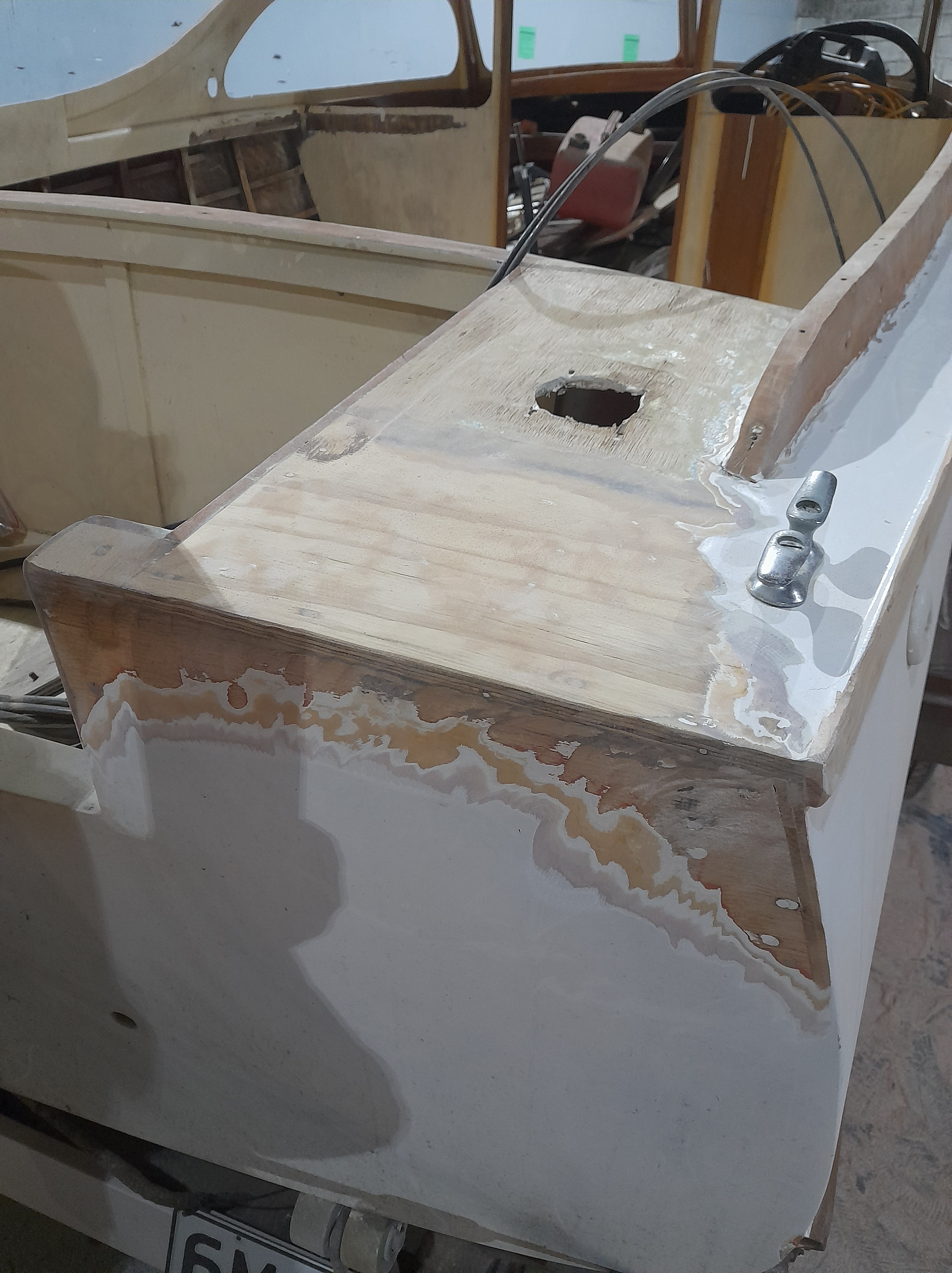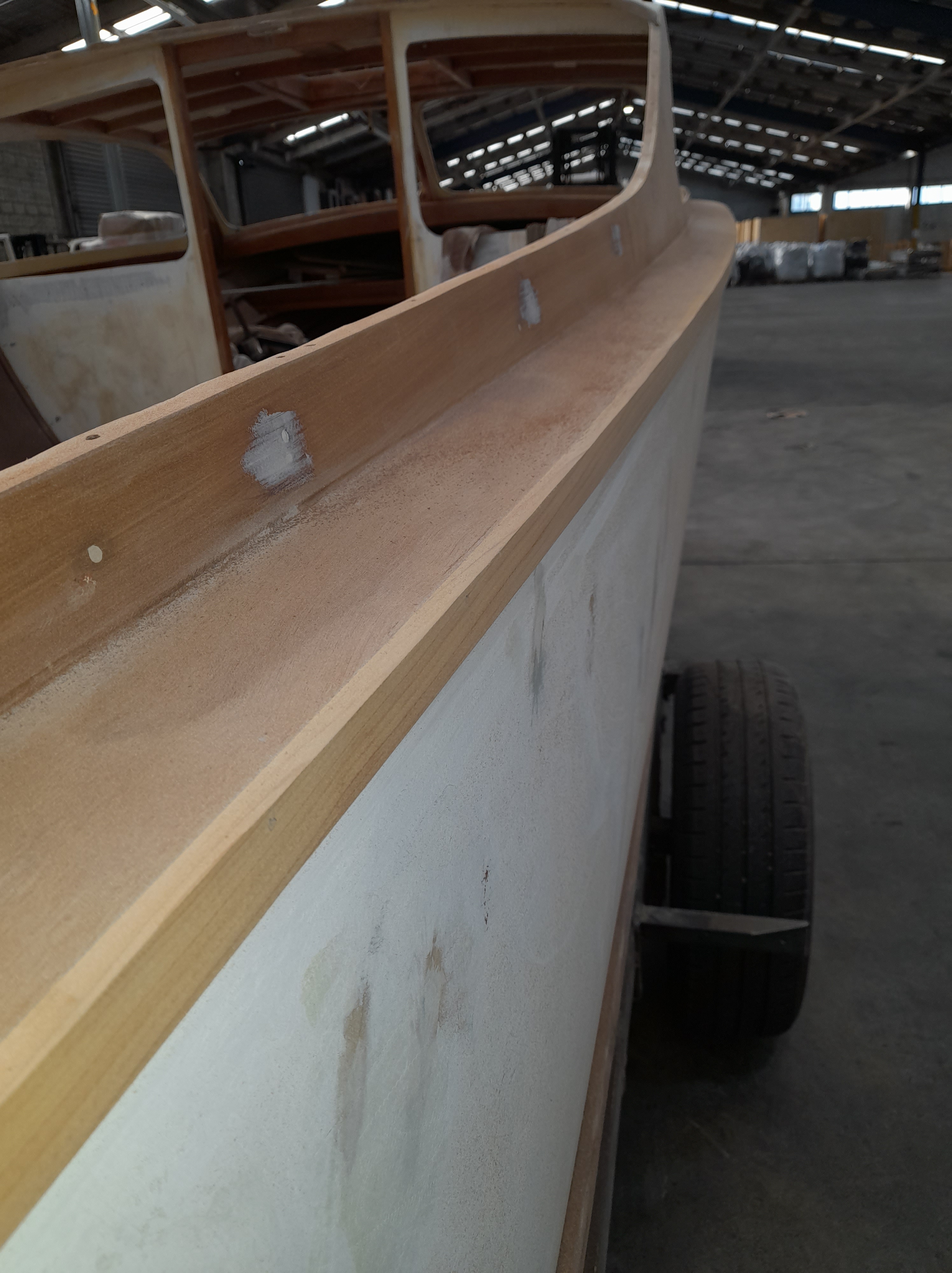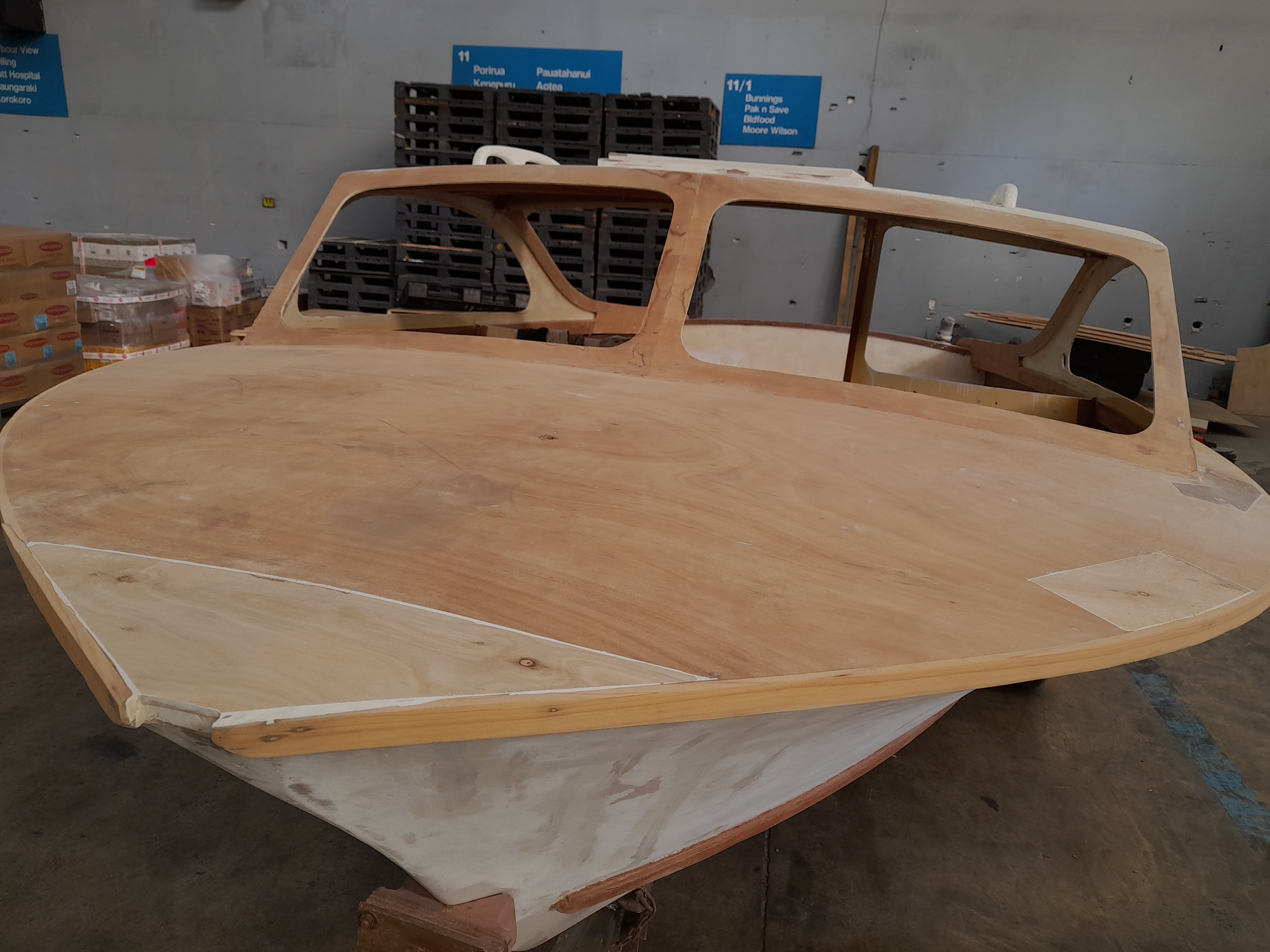 It’s not a boat builder quality job but a labour of love with a hard timeline and a fantastic learning curve assisted by the professional English and American wooden boat builders on youtube. It’s all International Yacht Paint products, 5 coats of colour on the hull and roof + 1 coat of varnish and every other varnished surface has 8 coats of Gold Spar original. At some stage in her past life she was converted to outboard power.