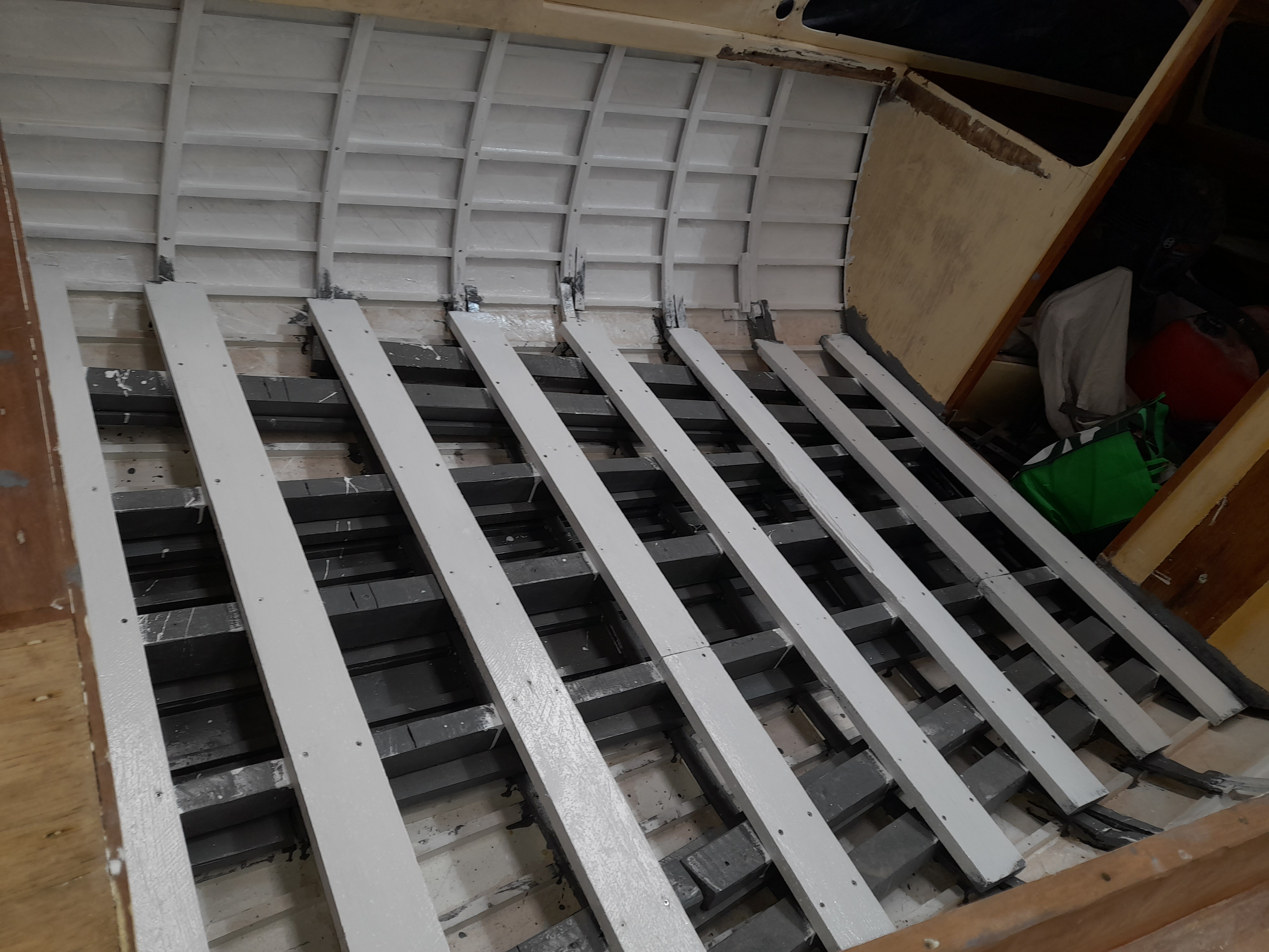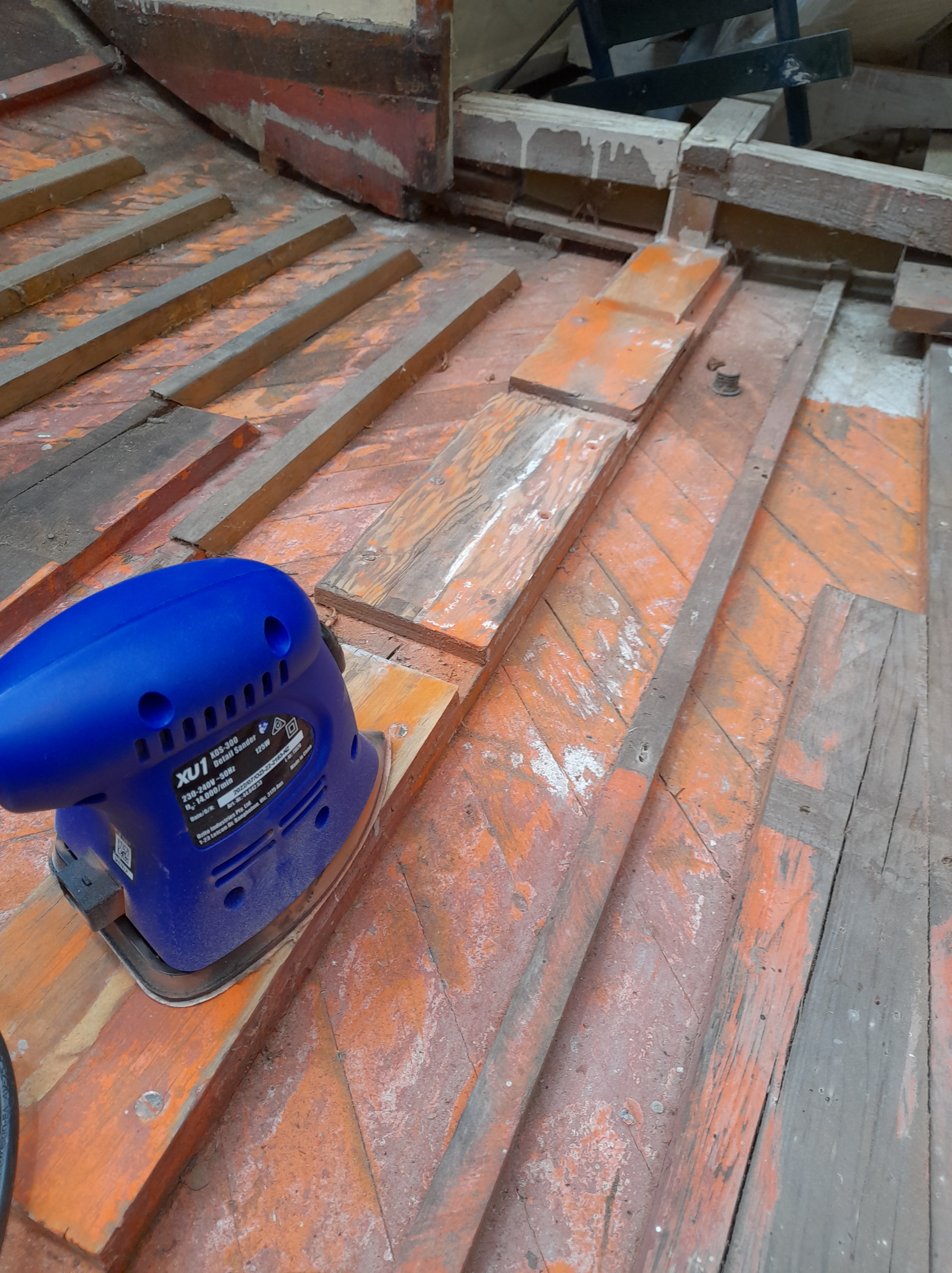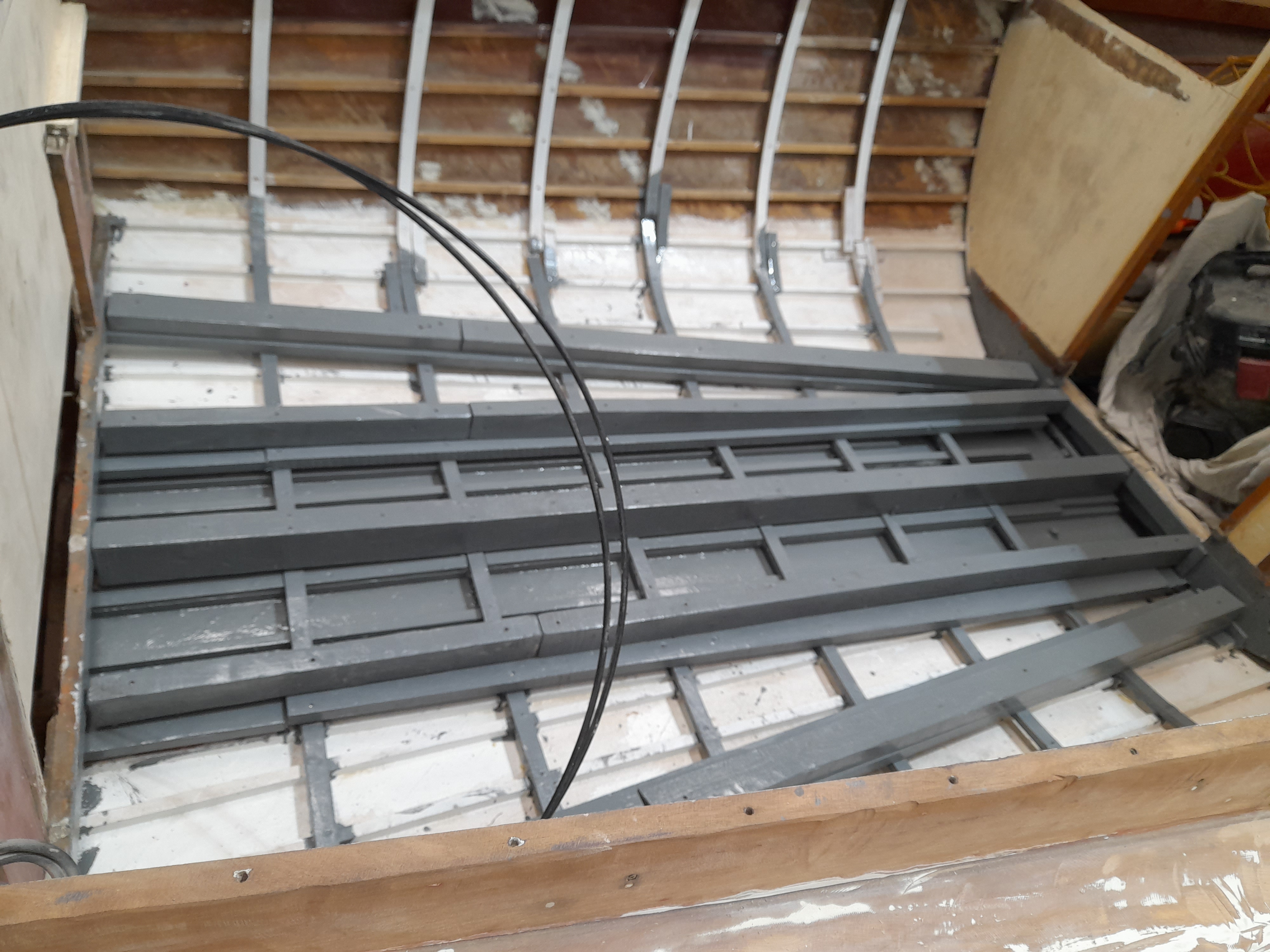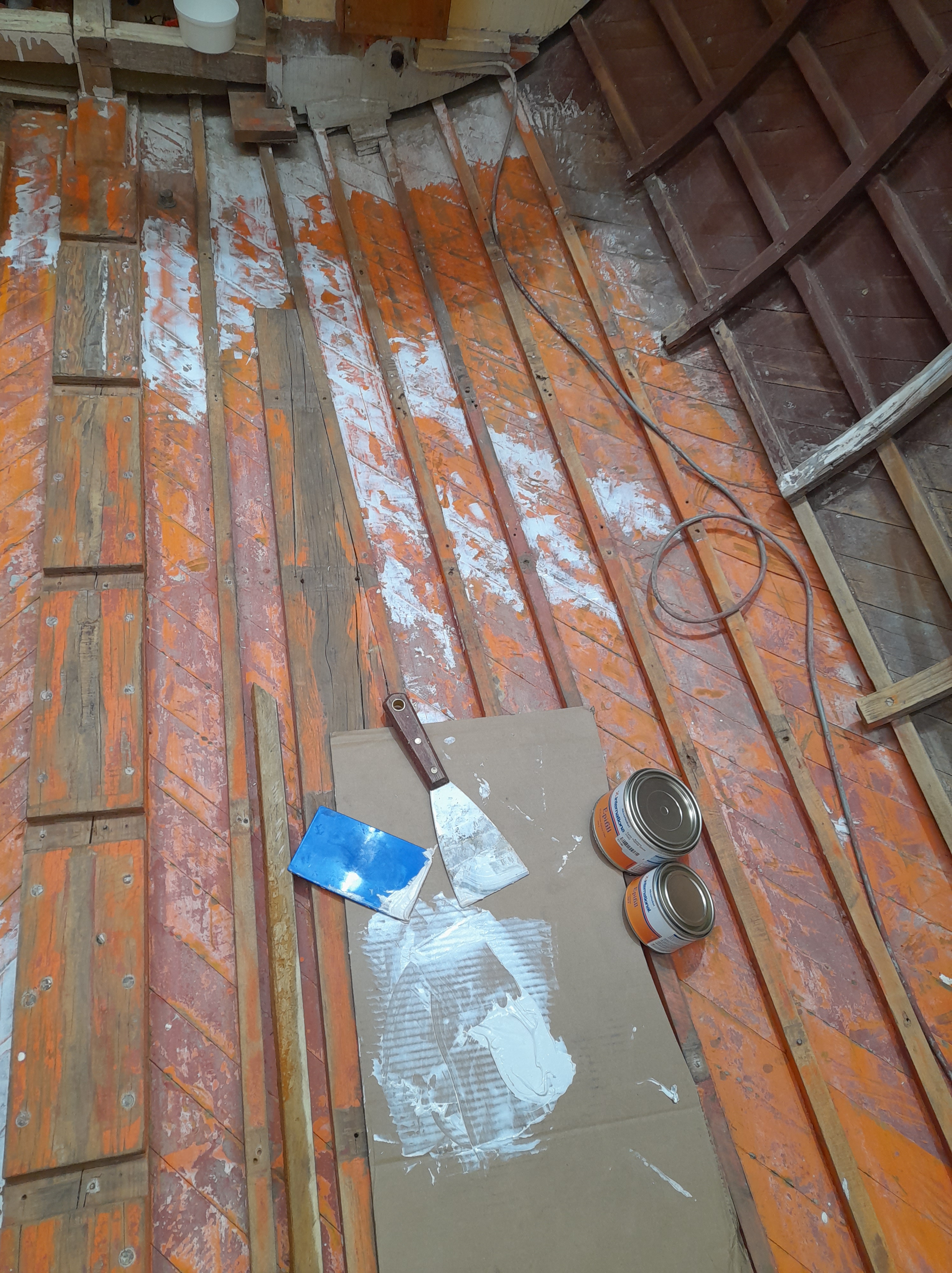 It’s not a boat builder quality job but a labour of love with a hard timeline and a fantastic learning curve assisted by the professional English and American wooden boat builders on youtube. It’s all International Yacht Paint products, 5 coats of colour on the hull and roof + 1 coat of varnish and every other varnished surface has 8 coats of Gold Spar original. At some stage in her past life she was converted to outboard power.