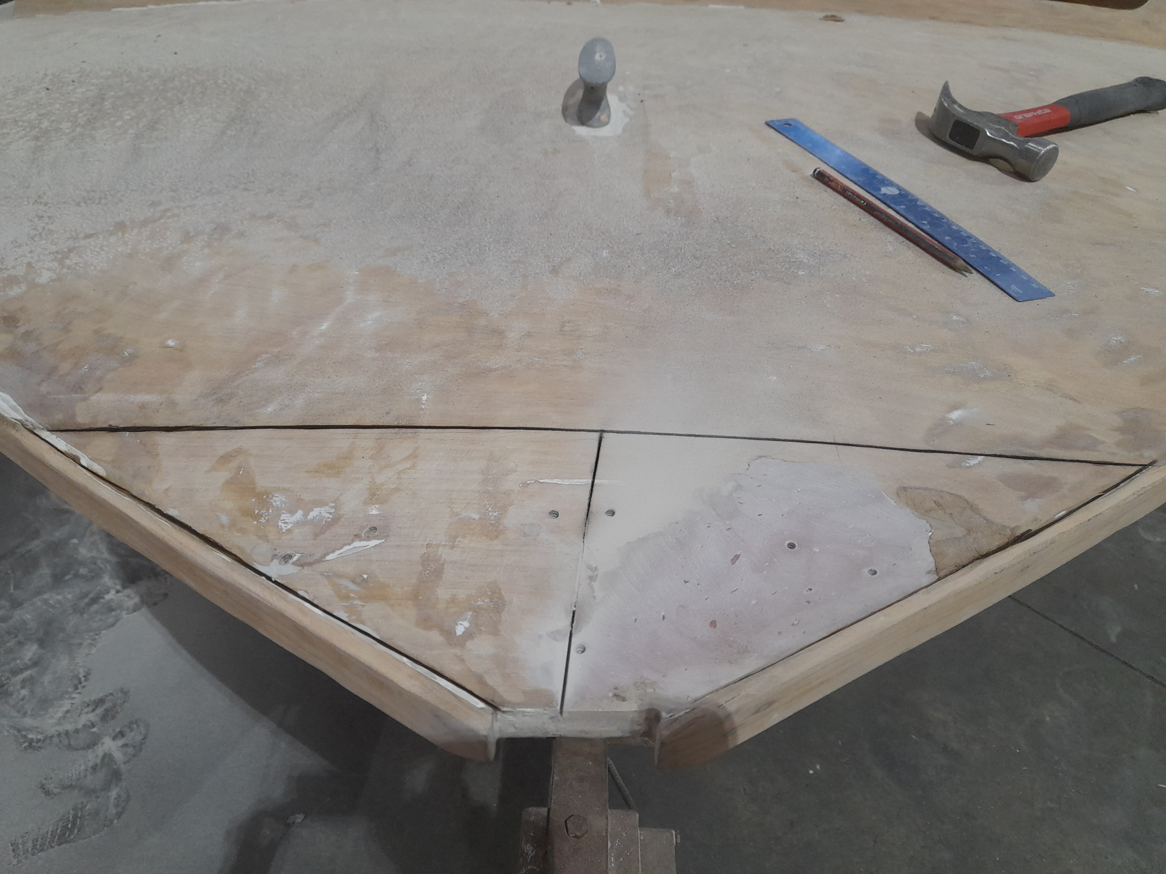 We’ll refresh the engine (Johnson 90 V4 2 stroke), glass the hull and repaint now that I can flip it over and work in daylight and change the prop to suit her better.”