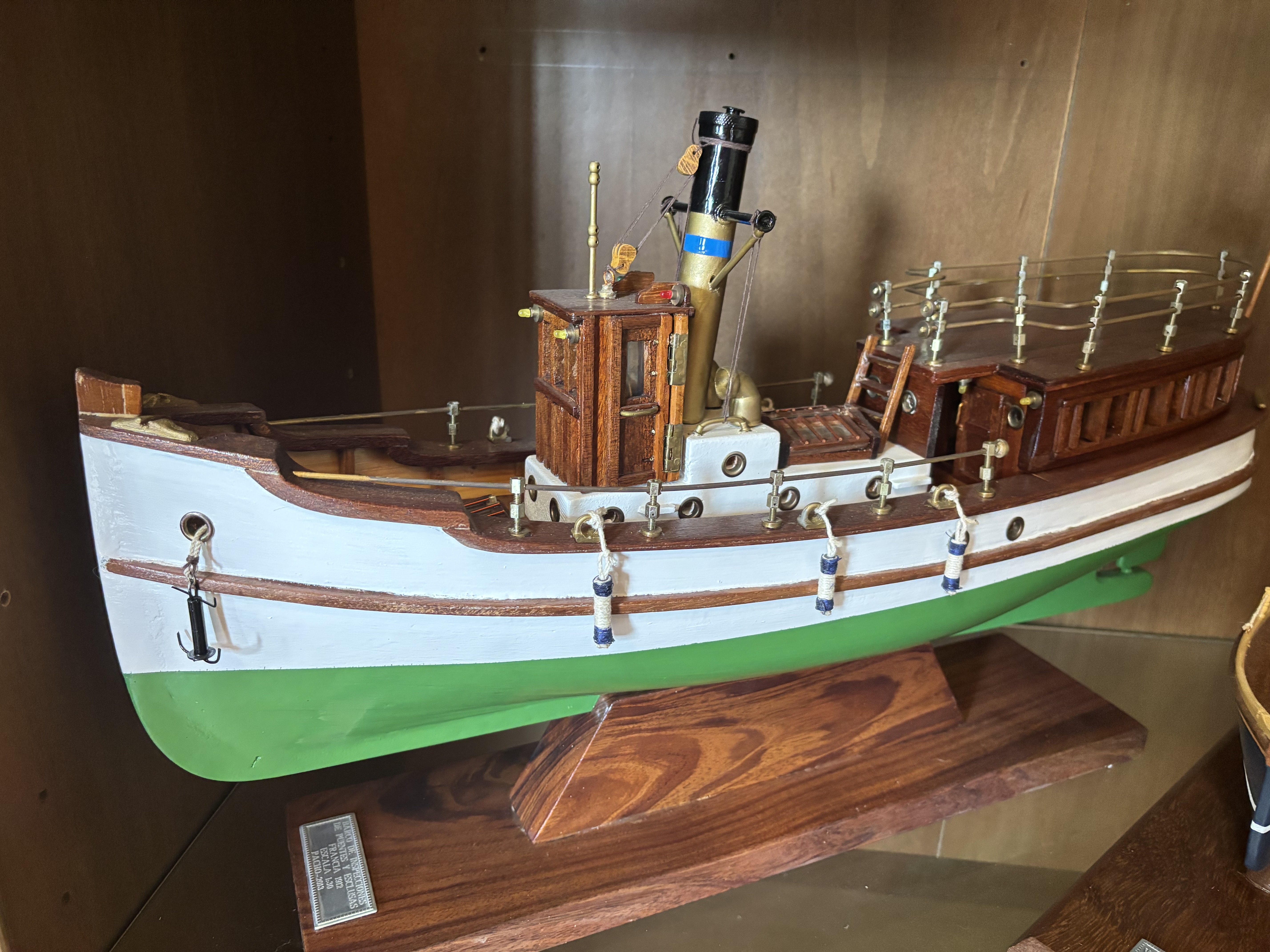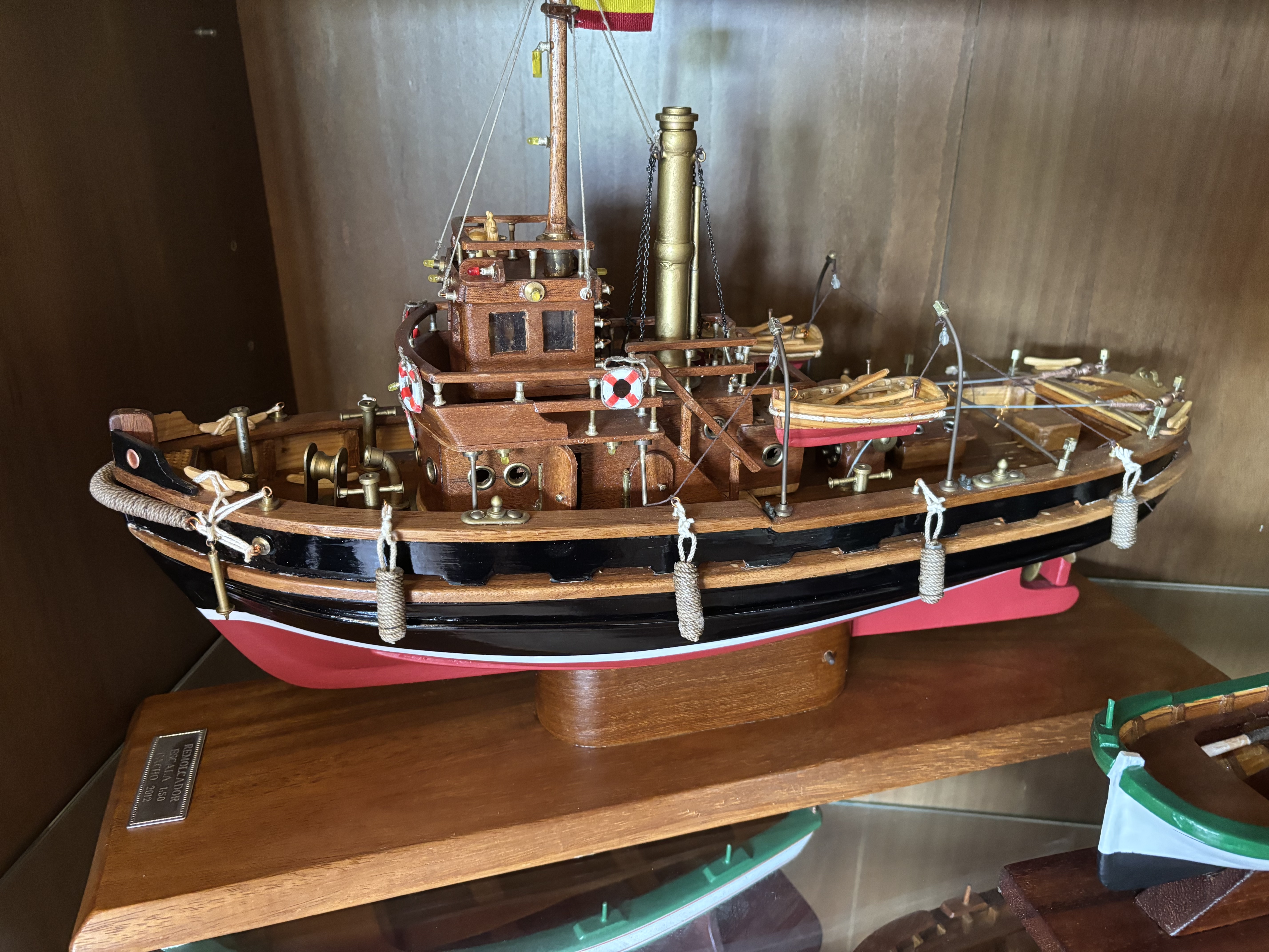 These models aren’t toys—they are scaled time capsules. From traditional fishing boats and rowboats to, English Tugboats and legendary schooners like El Industrial, Pepe’s work captures an exact scale model of history in each perfect centimeter of wood and rigging. Every curve tells a story, and every example is the result of countless hours of painstaking labor.