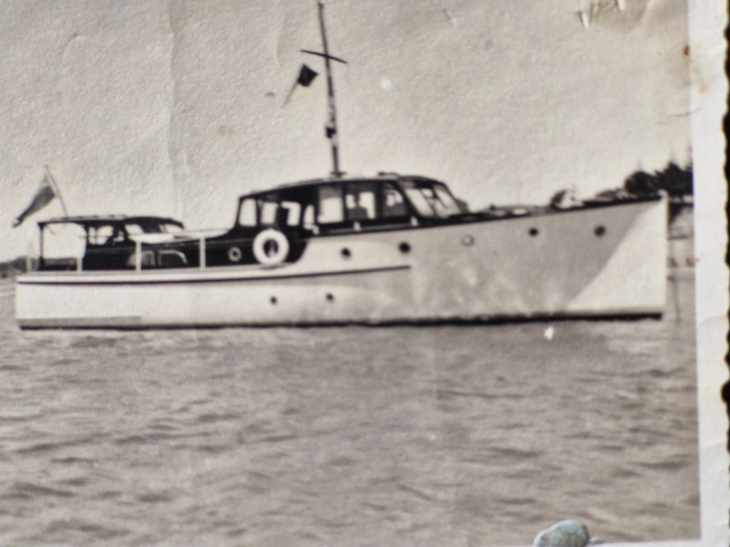 As a result of the photo (see below) of the classic 40’ wooden launch – MARISTELLA, built in 1936 by Sam Ford, appearing at the recent Classic Woodys Boat Show at OBC – WW was contacted by Katherine Armstrong. Katherine’s parents Roy and Daphine Bridge were previous owners of MARISTELLA.