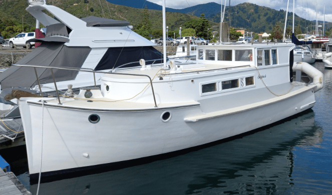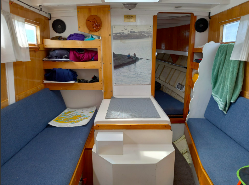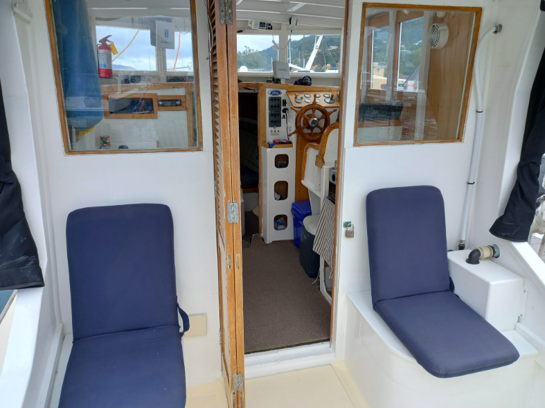 Forward motion is via a 80hp Ford Dover diesel engine that gets her along at a comfortable 7.5 knots.