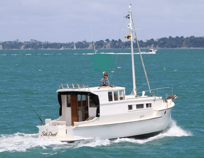 The launch has made several appearances on WW, the most recent back in July 2019, link below, when she was relocating south (by road). In a previous life was was named SEA DEVIL. https://waitematawoodys.com/2019/07/26/skipjack-sea-devil/