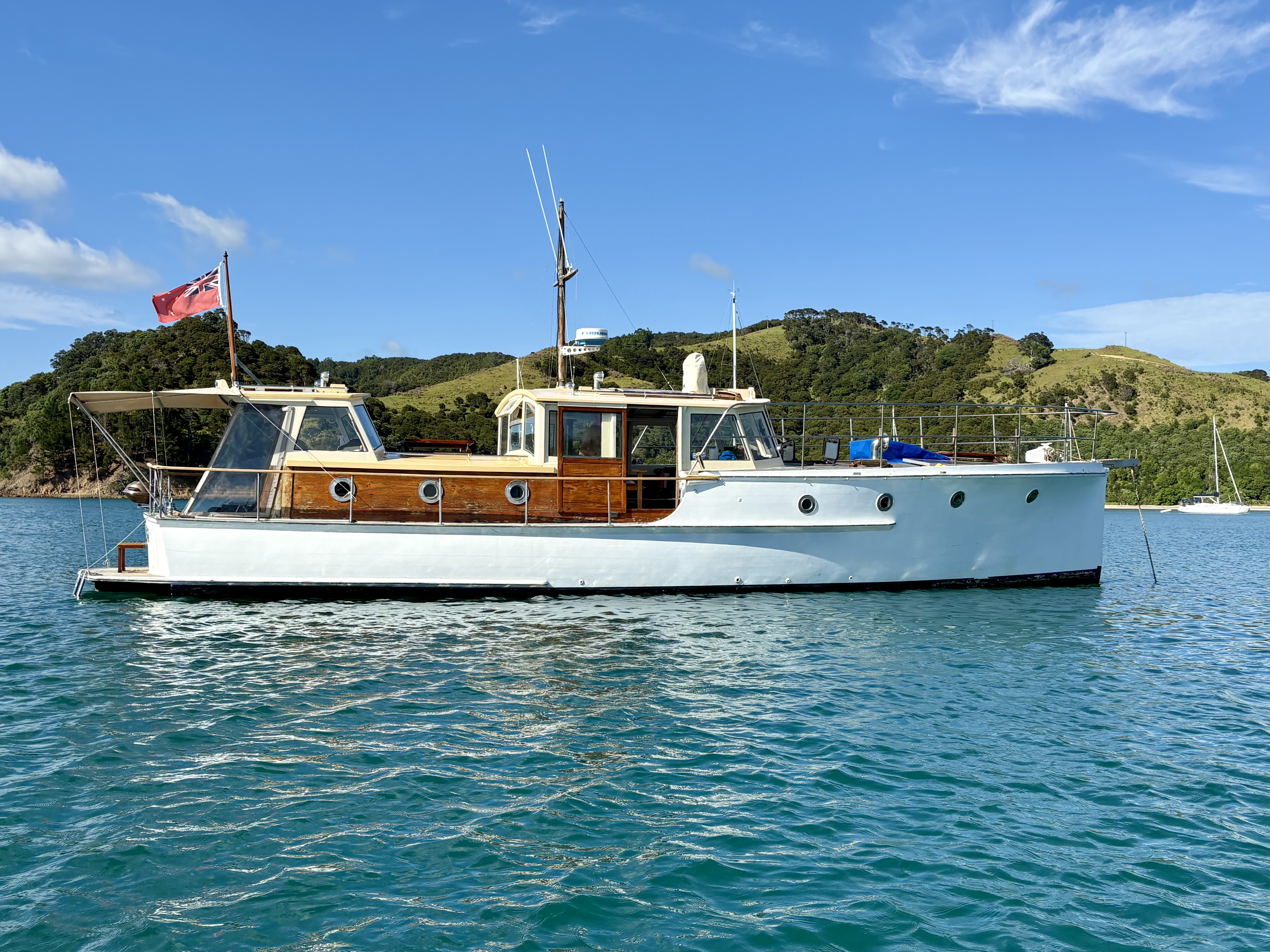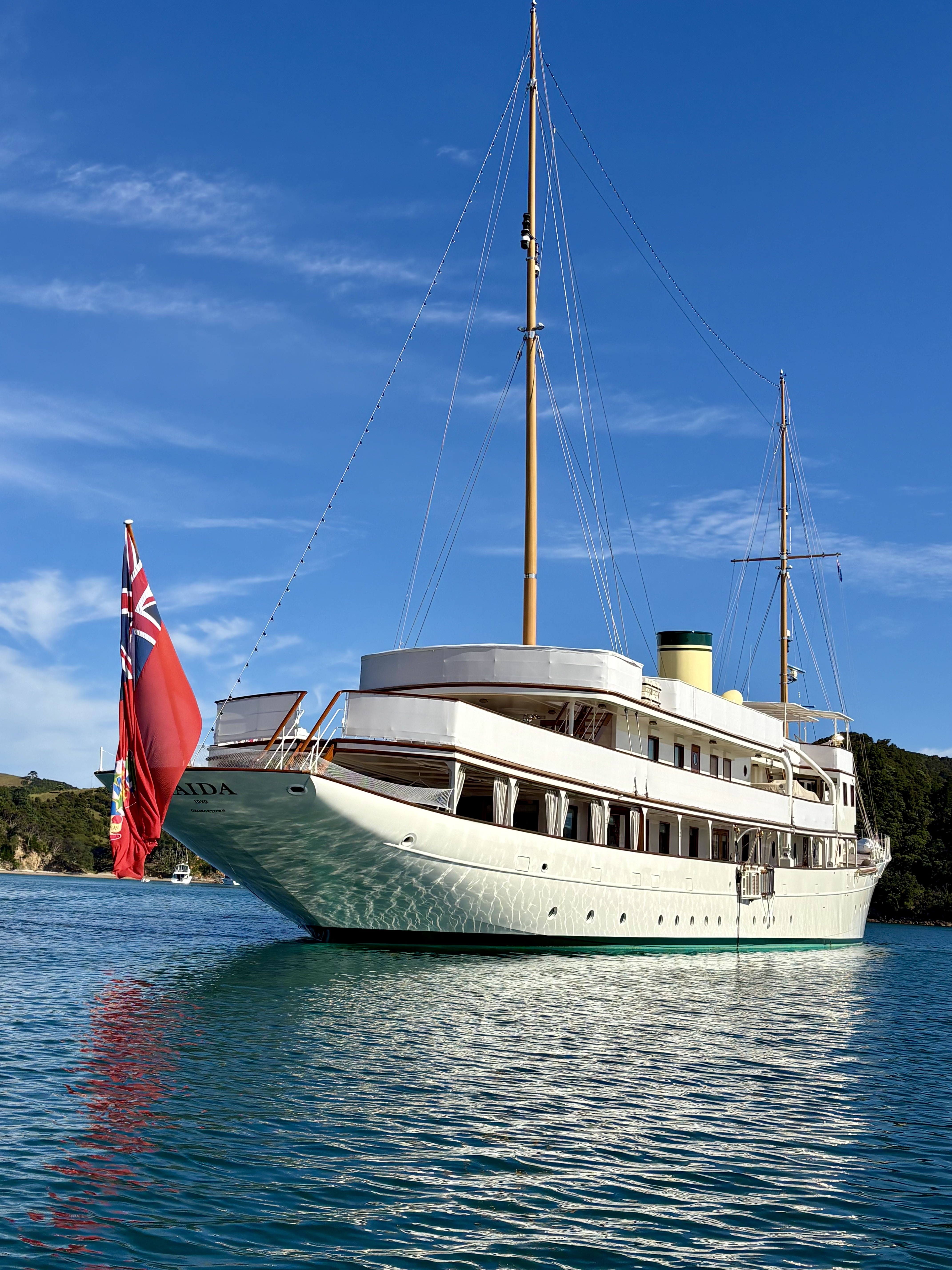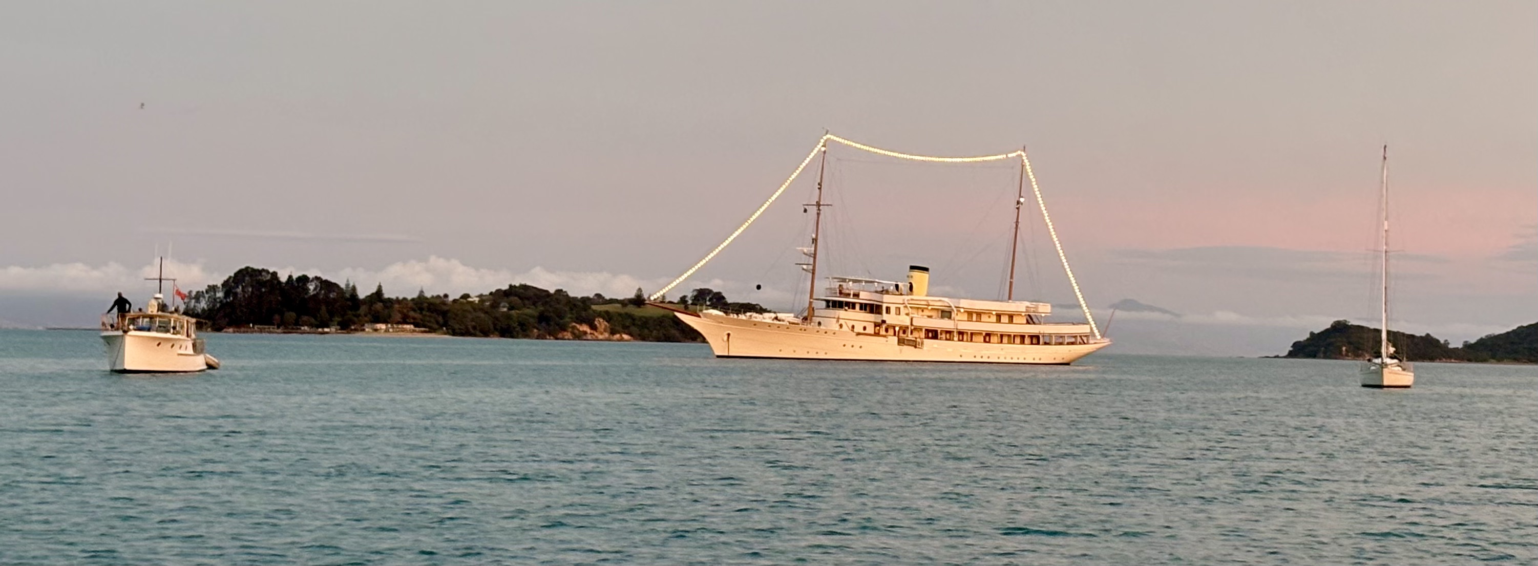 Angus was overnighting in Man ‘o’ War Bay, Waiheke Island and was sharing the anchorage with the 233’ majestic CLASSIC super yacht – HAIDA, built in 1929 (originally steam powered). When last in NZ, March 2014, she was owned by Sir James Dyson, the Dyson vacuum cleaner billionaire. Rumour has it these days owned by another billionaire from Hong Kong.