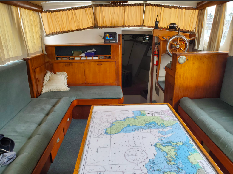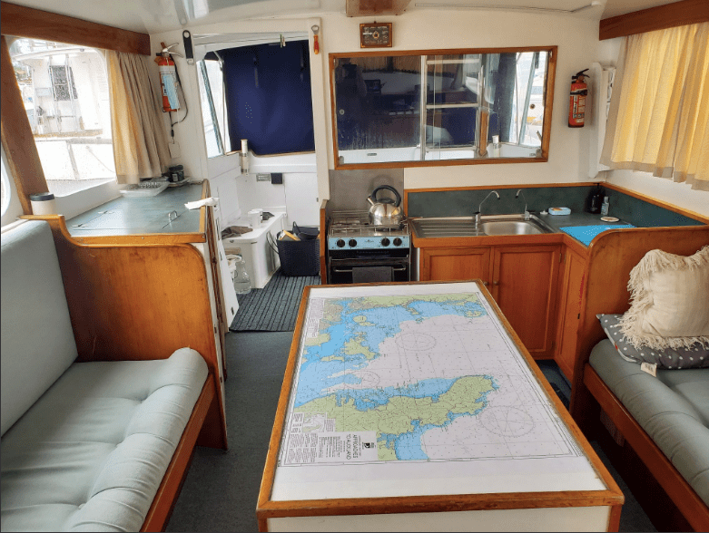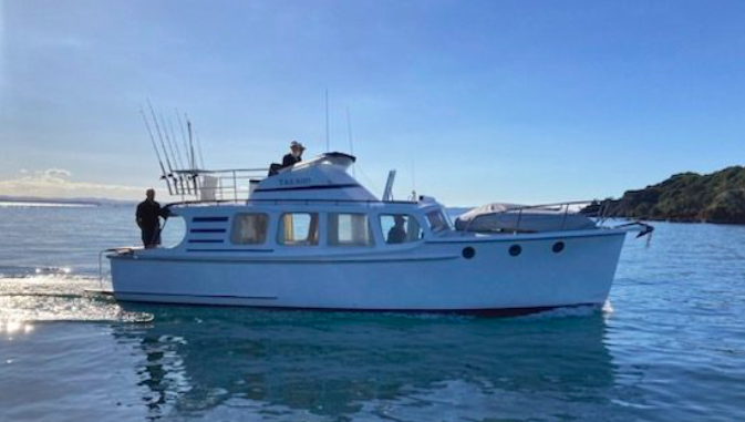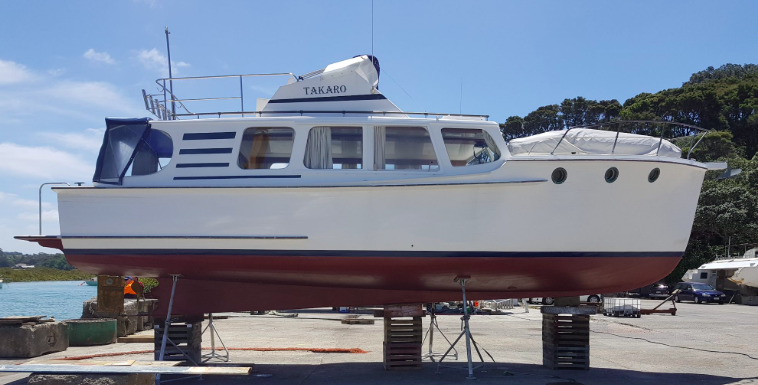 Back then we learnt that TAKARO was built approx 1952 and was 35’, kauri planked with a 11’3” beam. In 2014 she had been fitted with a reconditioned 120hp D-series Ford motor with Lees Marine conversion. This engine was reconditioned in 2013.