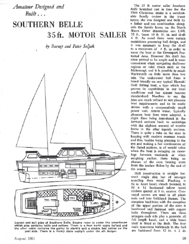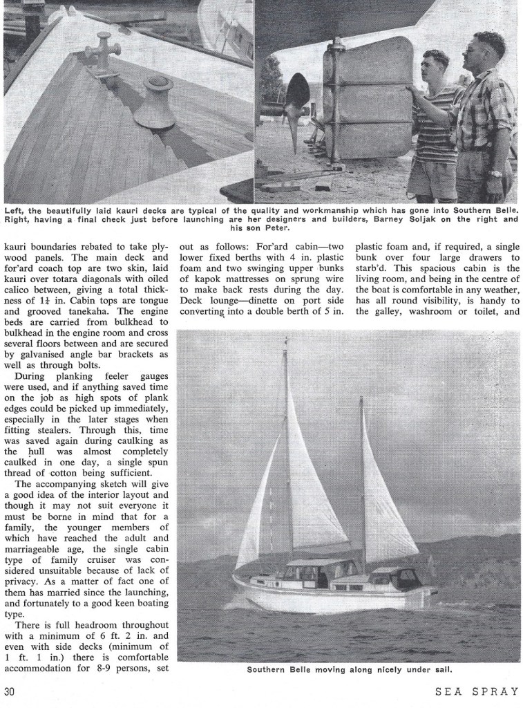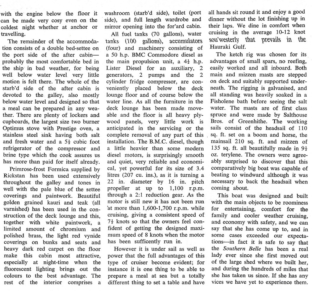 Todays woody story features the 35’ ketch rigged motorsailer- SOUTHERN BELLA, launched in 1960. She featured in the August 1961 edition of Sea Spray magazine.
