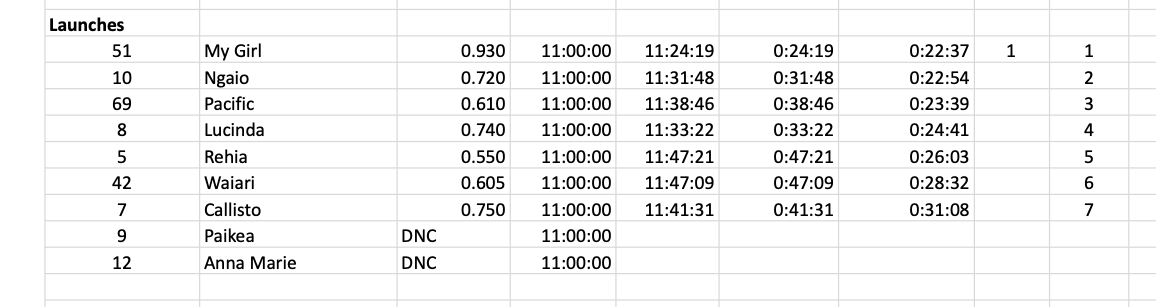 This year we were lacking a few of real quick woodys so Mr Prew had the race in hand after 10 seconds. Some close racing with the ‘recently’ re-powered woodies – NGAIO and LUCINDA. Do not have the handicap results but line honours went to MY GIRL / NGAIO / LUCINDA. All serviced at The Slipway Milford yard so a nice trifecta.