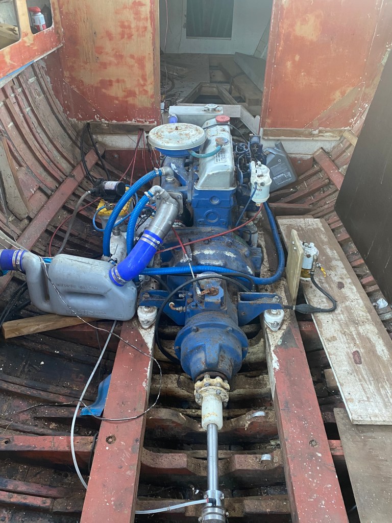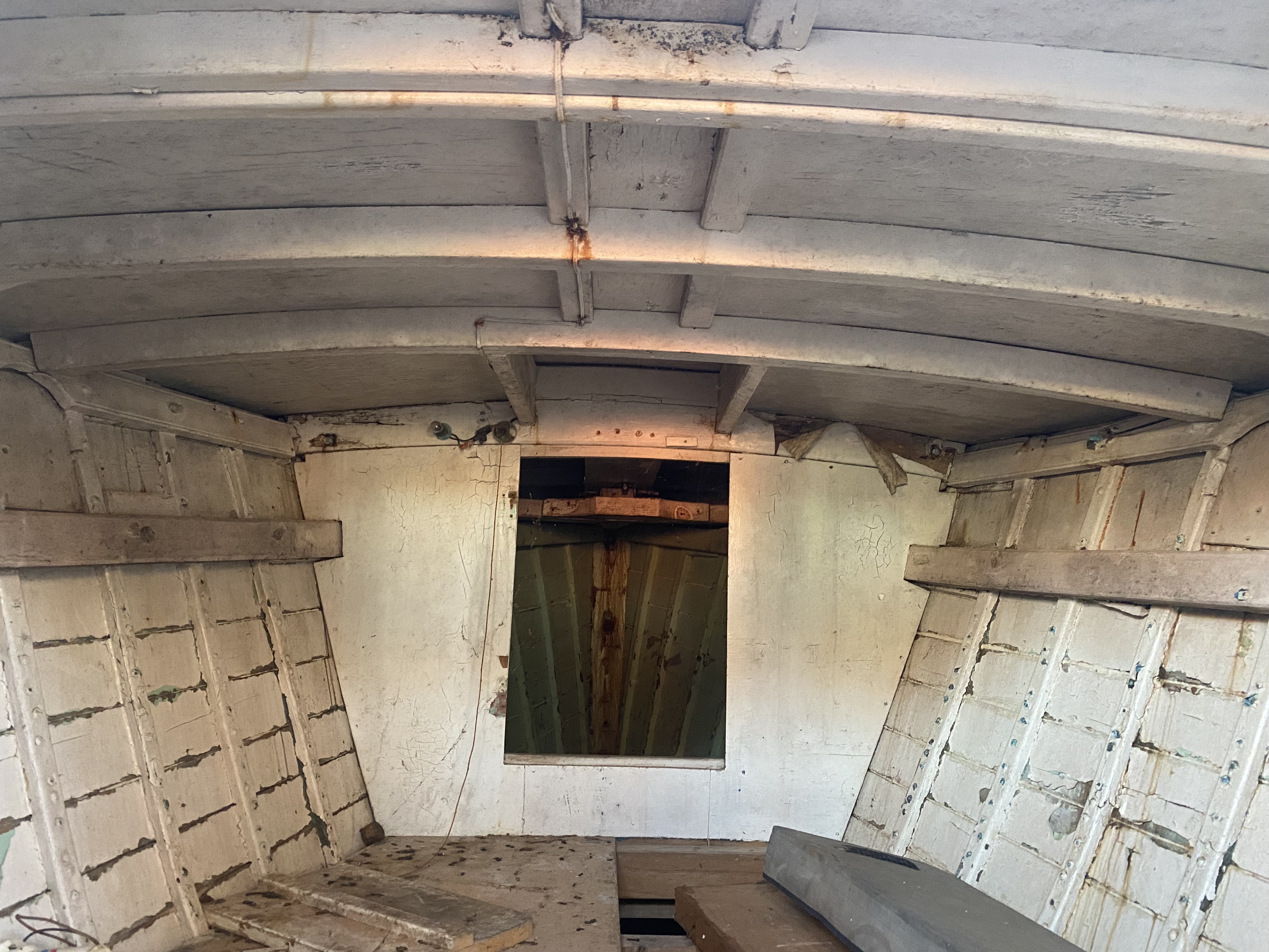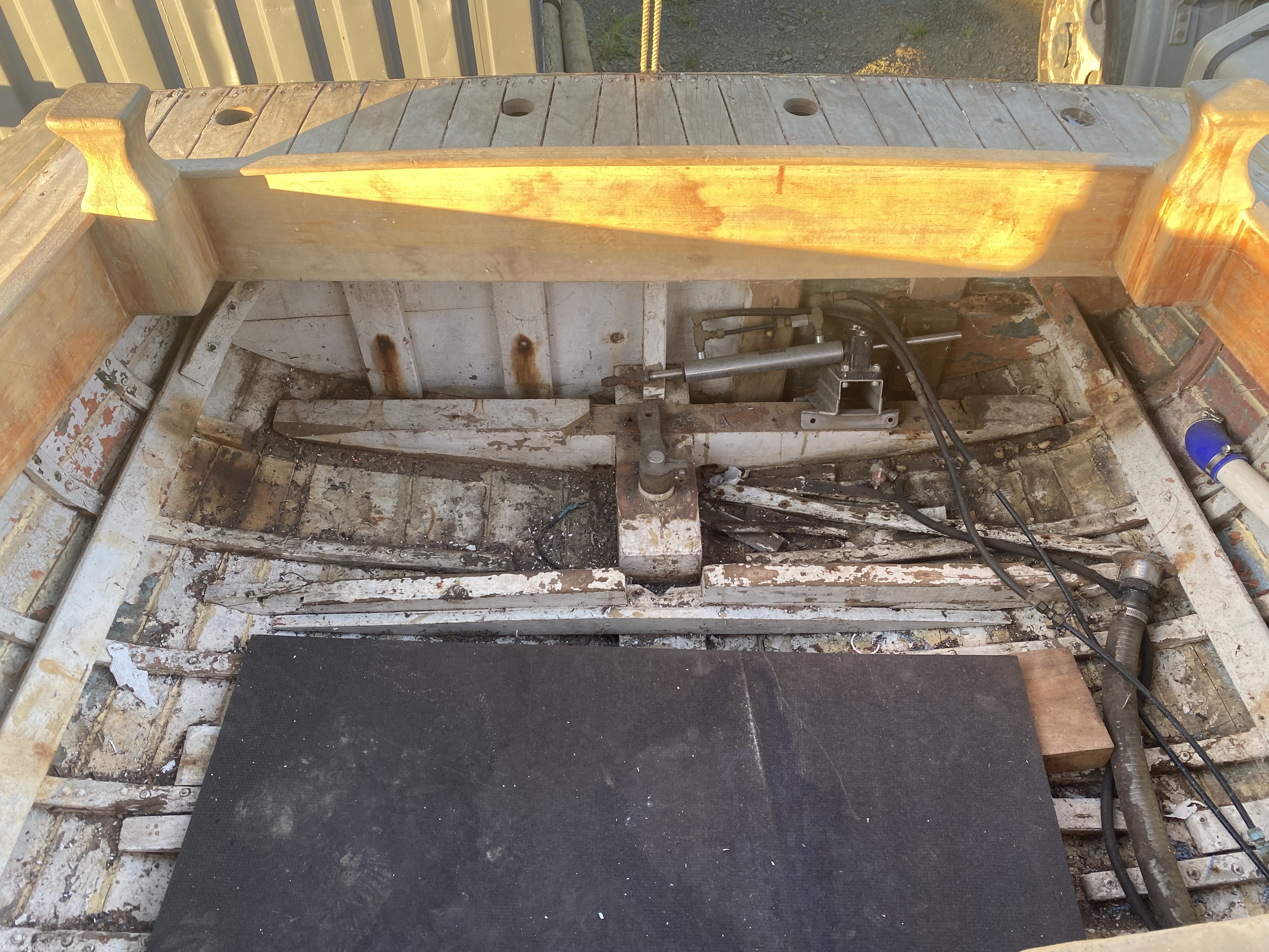 The rebuild had been an ongoing project for an extended period and her owner was unable to complete the project. I believe her hull has been f/glassed…..