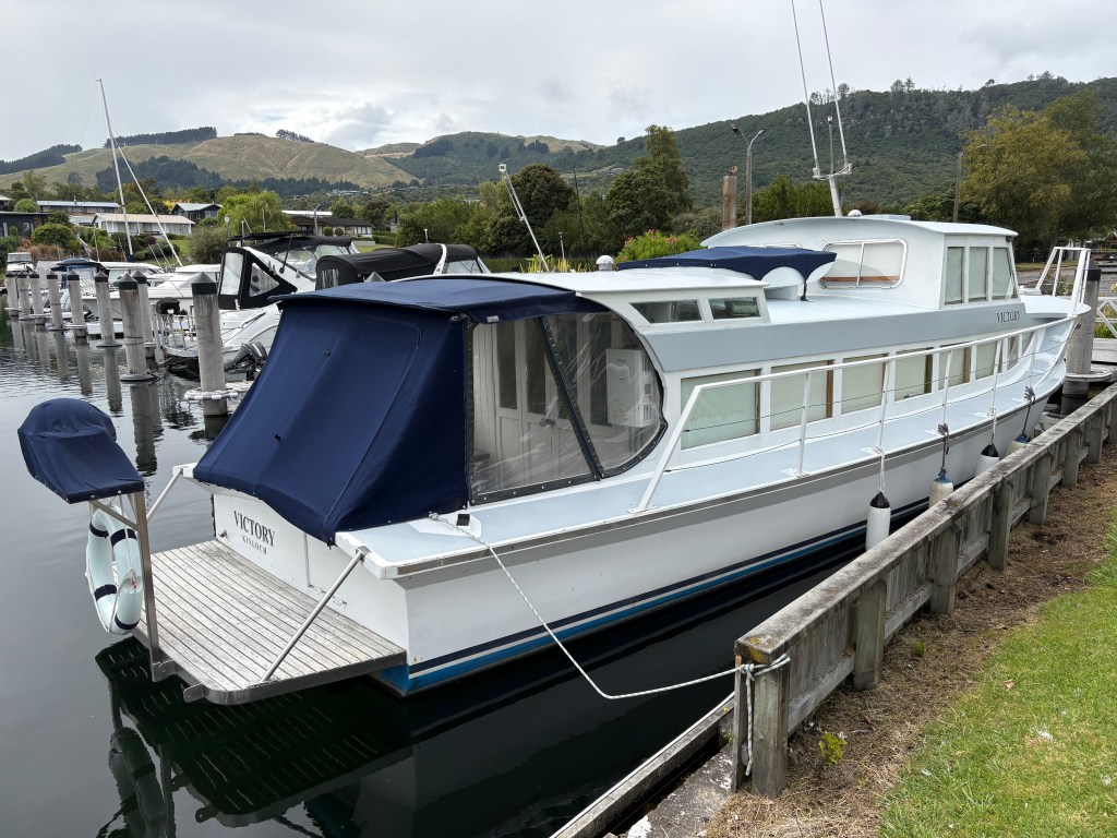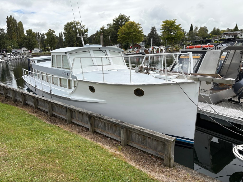 Woody Angus Rogers sent the photos above of the 40’ Kinlock Marina based classic wooden launch – VICTORY. Designed and built by Jack Taylor in Taupo in 1939. She spent time as a charter boat.