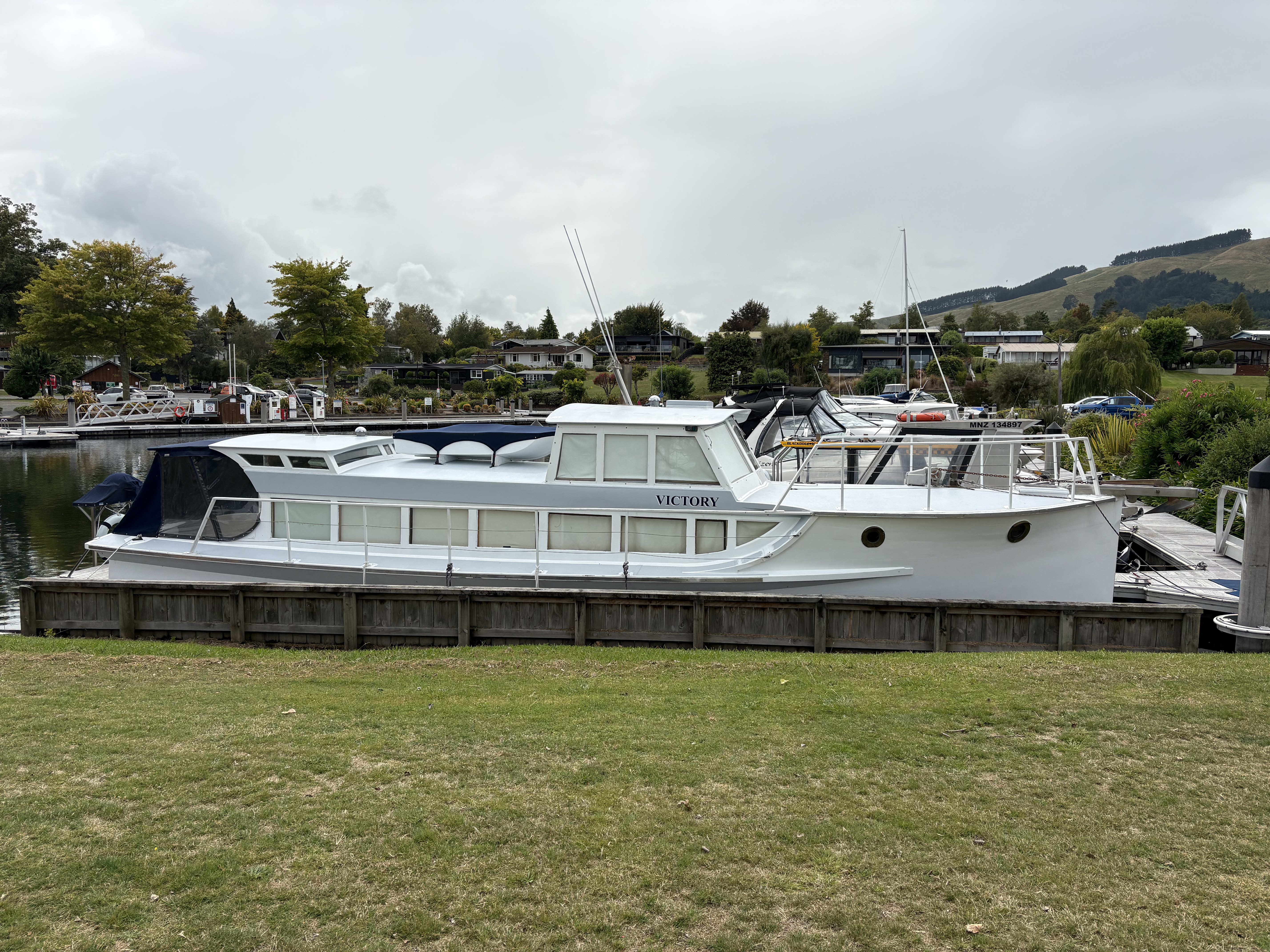 Woody Angus Rogers sent the photos above of the 40’ Kinlock Marina based classic wooden launch – VICTORY. Designed and built by Jack Taylor in Taupo in 1939. She spent time as a charter boat.