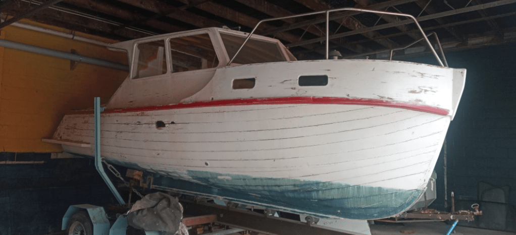 What we learnt was she was 18’ in length, built from kauri carvel planking, and there was a Lees Marine Ford engine in her. Her fittings must have been worth the asking price, but the location – Maungaturoto, Northland, would have put people off + no trailer in the sale.