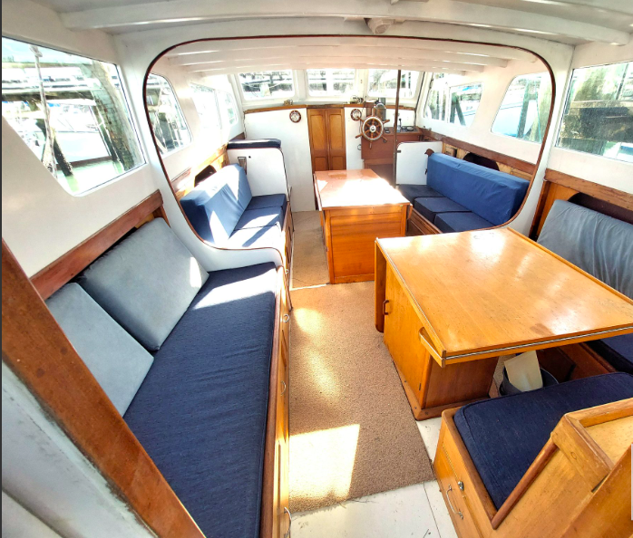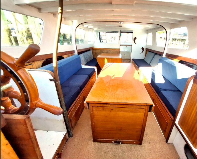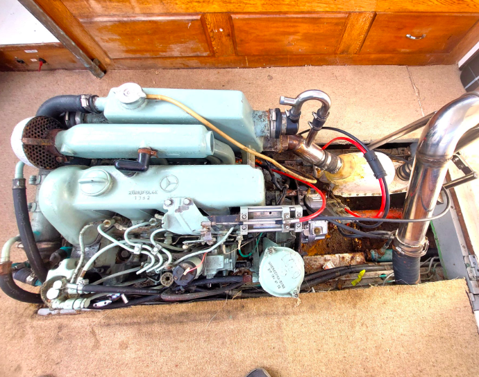 These days she is powered by a 1988, 72hp Sole (marinised Mercedes) diesel engine giving a comfortable cruising speed of 7.5 knots.