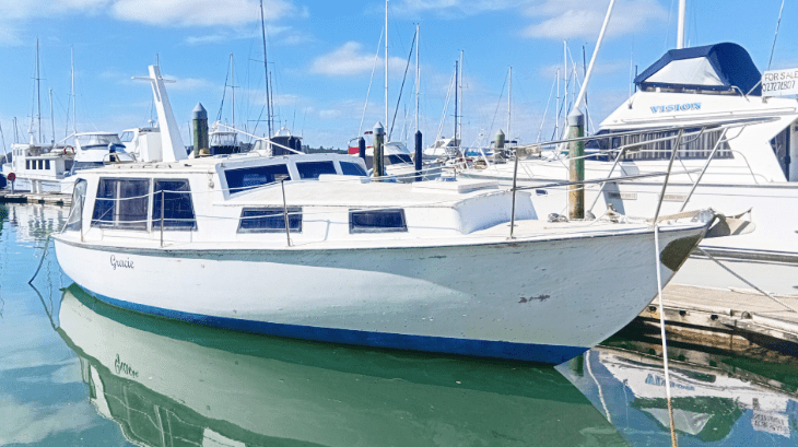In 1741 David Hume termed the phase – ‘beauty is in the eye of the beholder’ – well it certainly applies to todays wooden vessel. In her tme story (thanks Ian McDonald) her owner says “Gracie is a beautifully proportioned classic wooden launch” , they also say she was designed by Jim Young – the claim to her beauty and designer have been challenged in the tme comments section and would have to agree. To my eyes has a high degree of yacht looks to her.