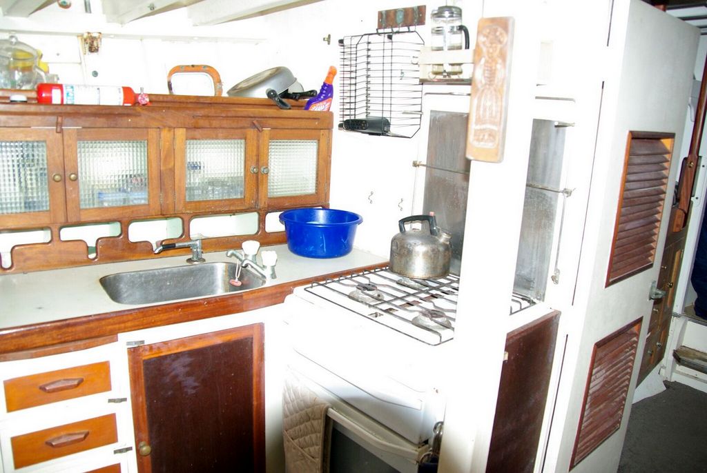 Te Tainui duly set sail on the planned cruise but only days into it returned (suggested incompatibility amongst the crew) to anchor off Herald Island and remained there ‘untouched’ until Don Brooke and Max Hall bought it some time in 1976-77. Their first task was to dump trailer loads of tinned provisions (for the world cruise) left since Te Tainui returned to the mooring many months earlier.