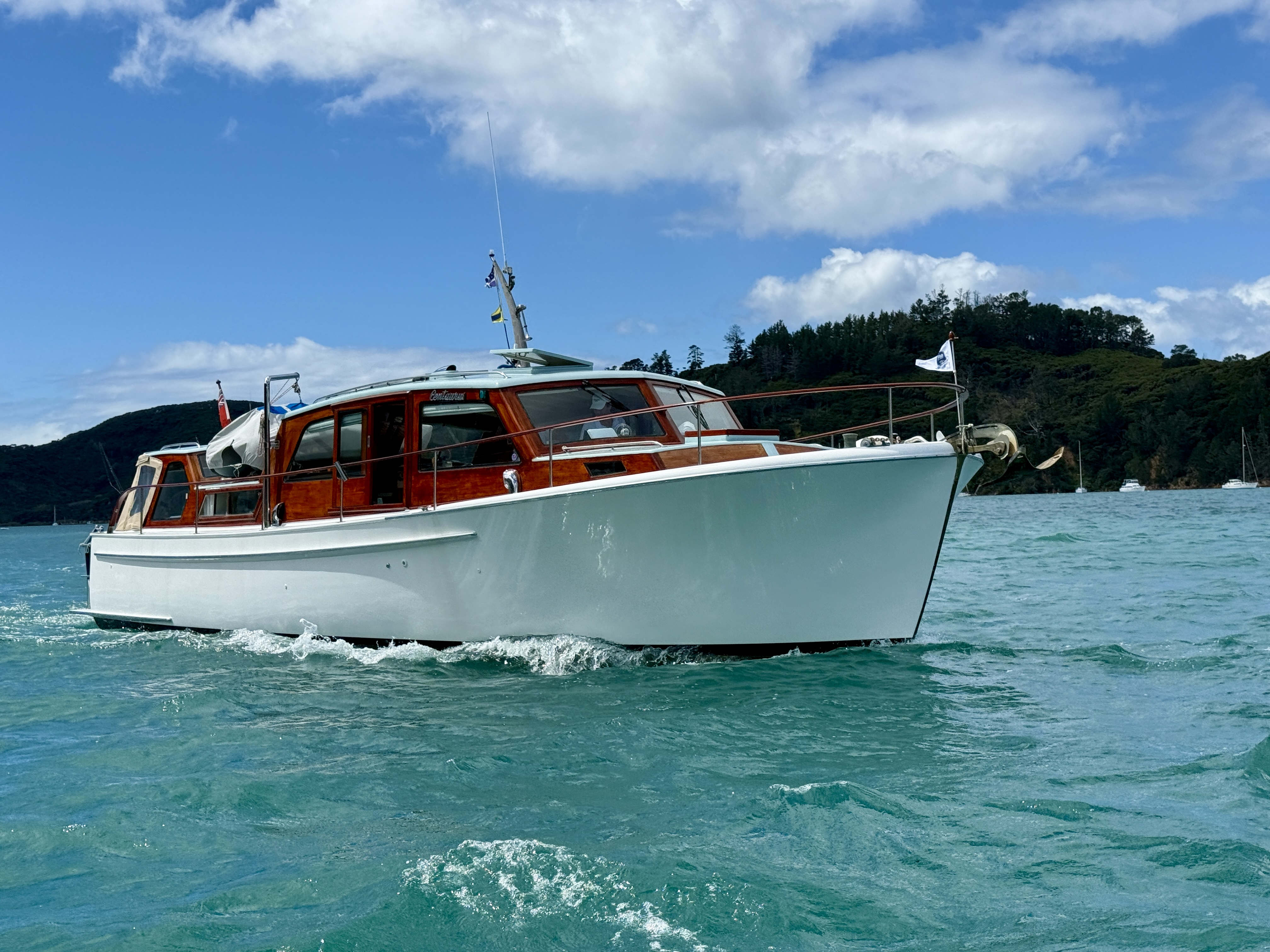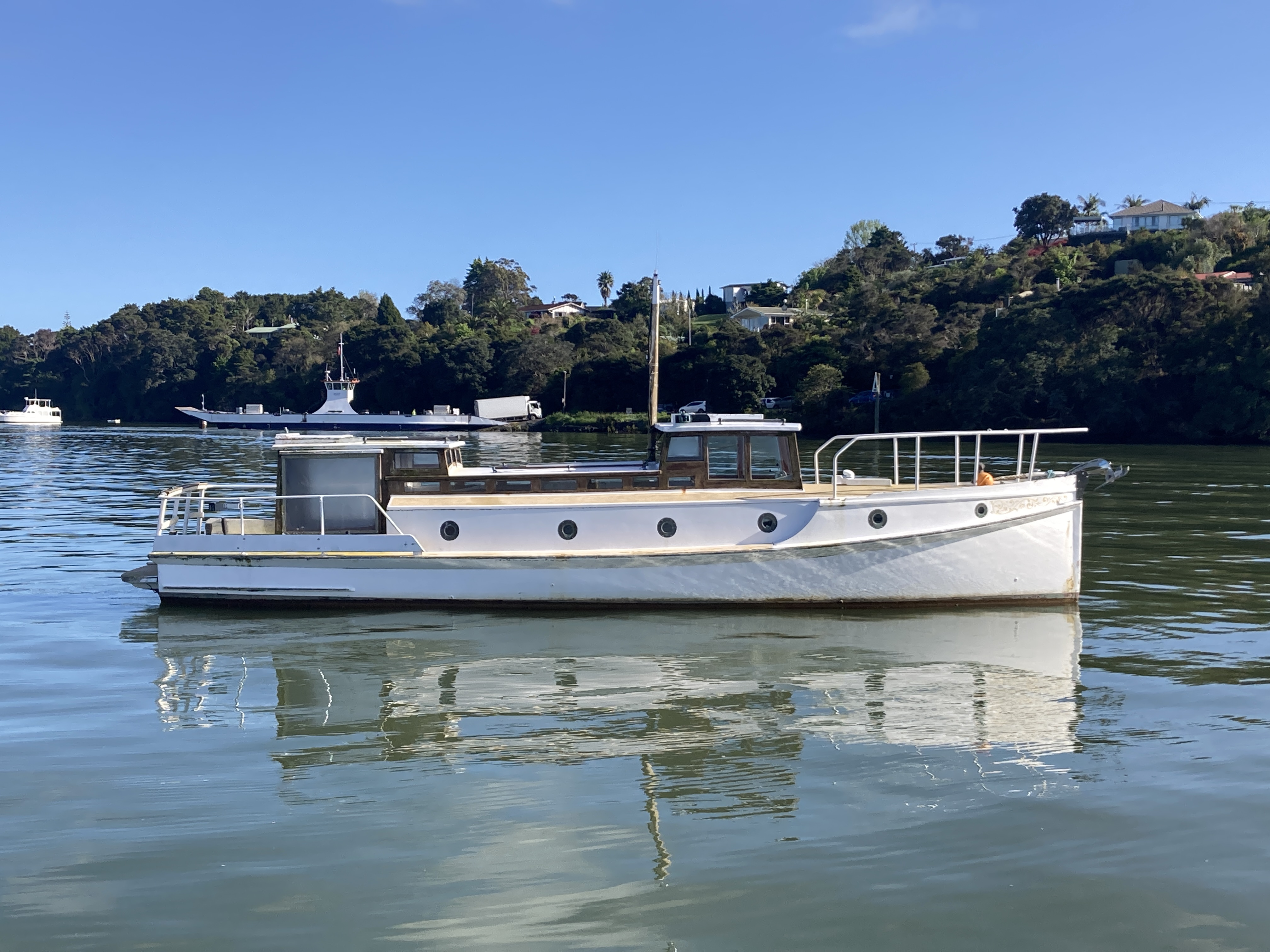 Todays gallery of classic Bay of Islands wooden boats was snapped by Dean Wright , owner of the majestic woody – ARETHUSA. Dean was un-route to hauling ARETHUSA out for her annual TLC.