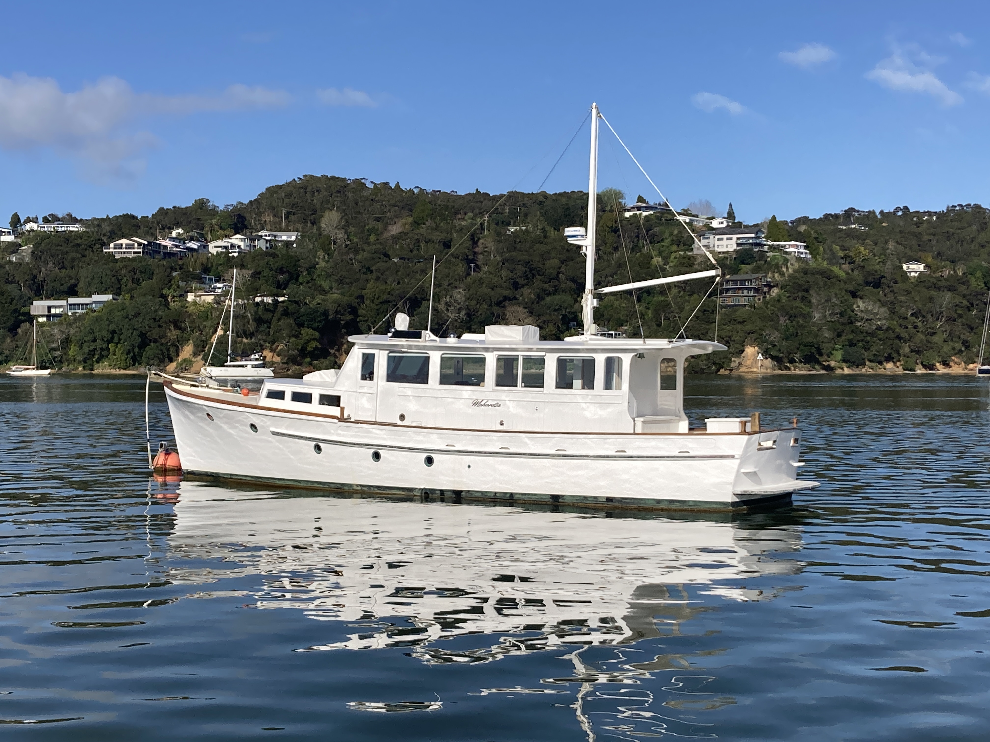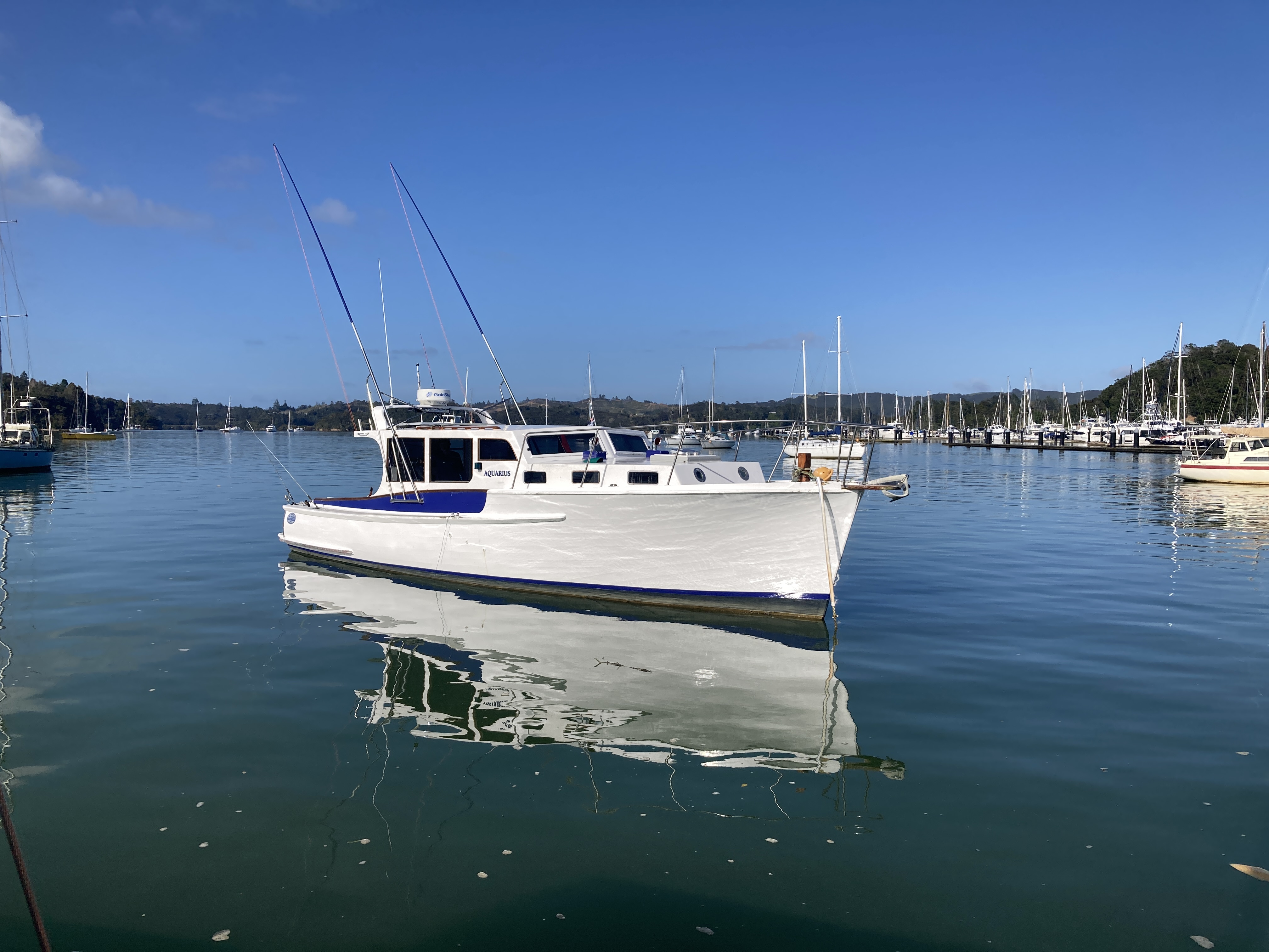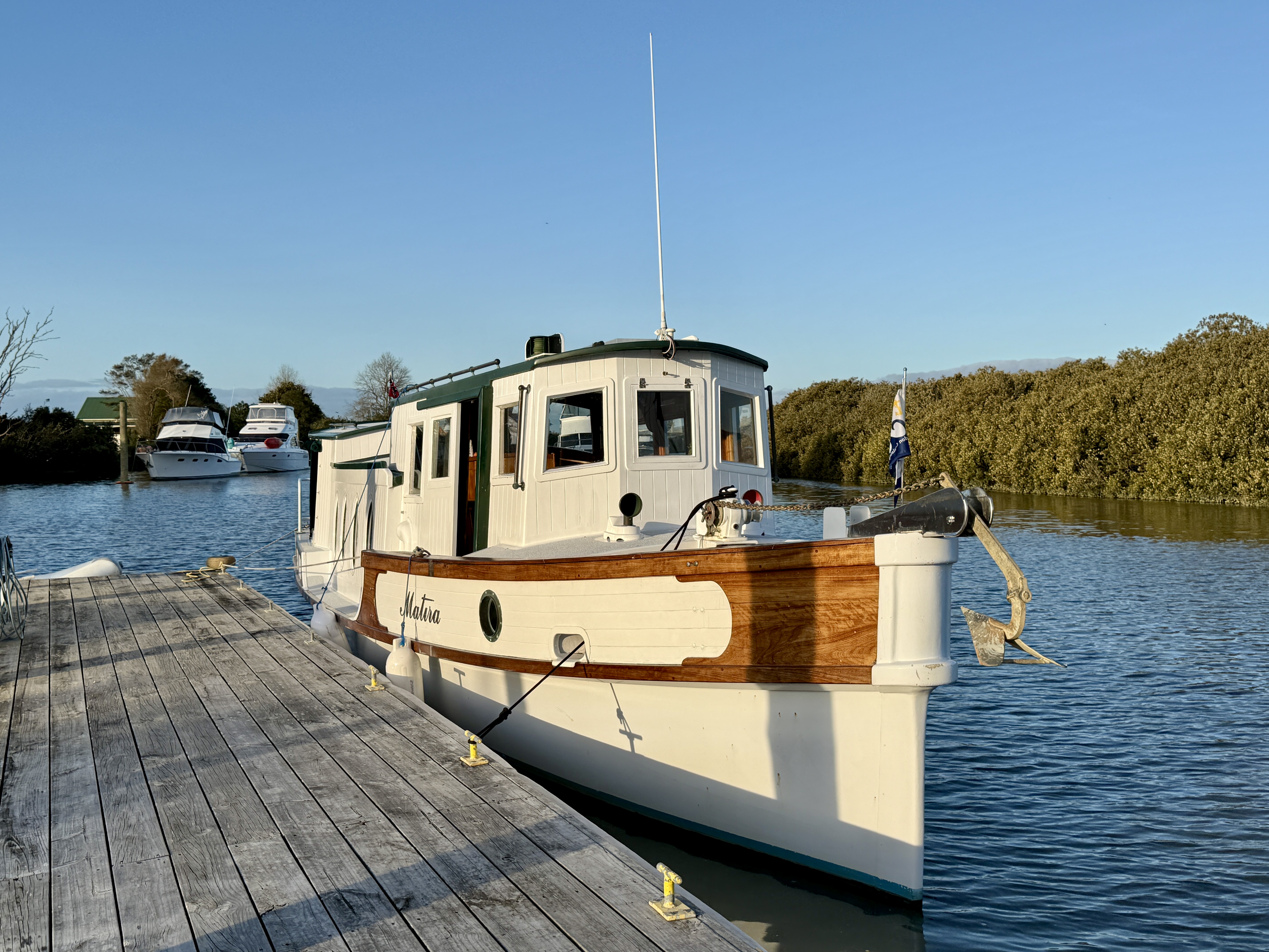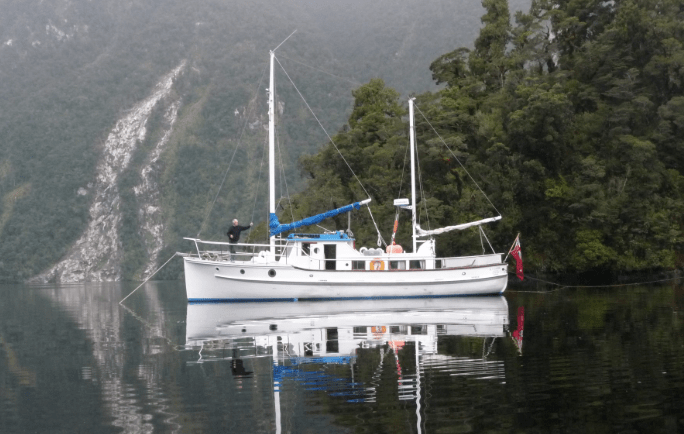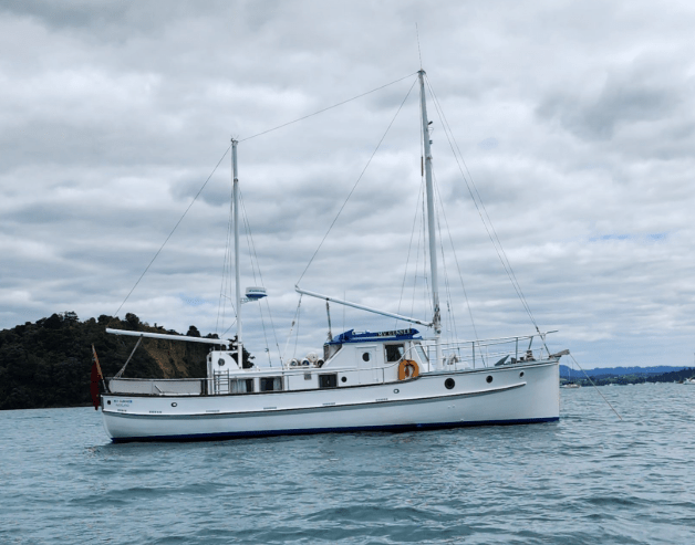 GUNNER was originally intended for work and fishing in the Marlborough Sounds. However, she was requisitioned by the Crown during wartime and transported to the Devonport Naval Base in Auckland for final fitting out. After the war, Gunner was sold and began commercial fishing out of Leigh Harbour. During this time, she also operated a mail run to Great Barrier Island in the Hauraki Gulf. Around 1957, Gunner changed hands again and continued her commercial fishing career from Port Ohope. In 1973, she underwent a 3-year conversion from a working vessel into a pleasure craft. This transformation included extending the wheelhouse and adding an aft cabin.