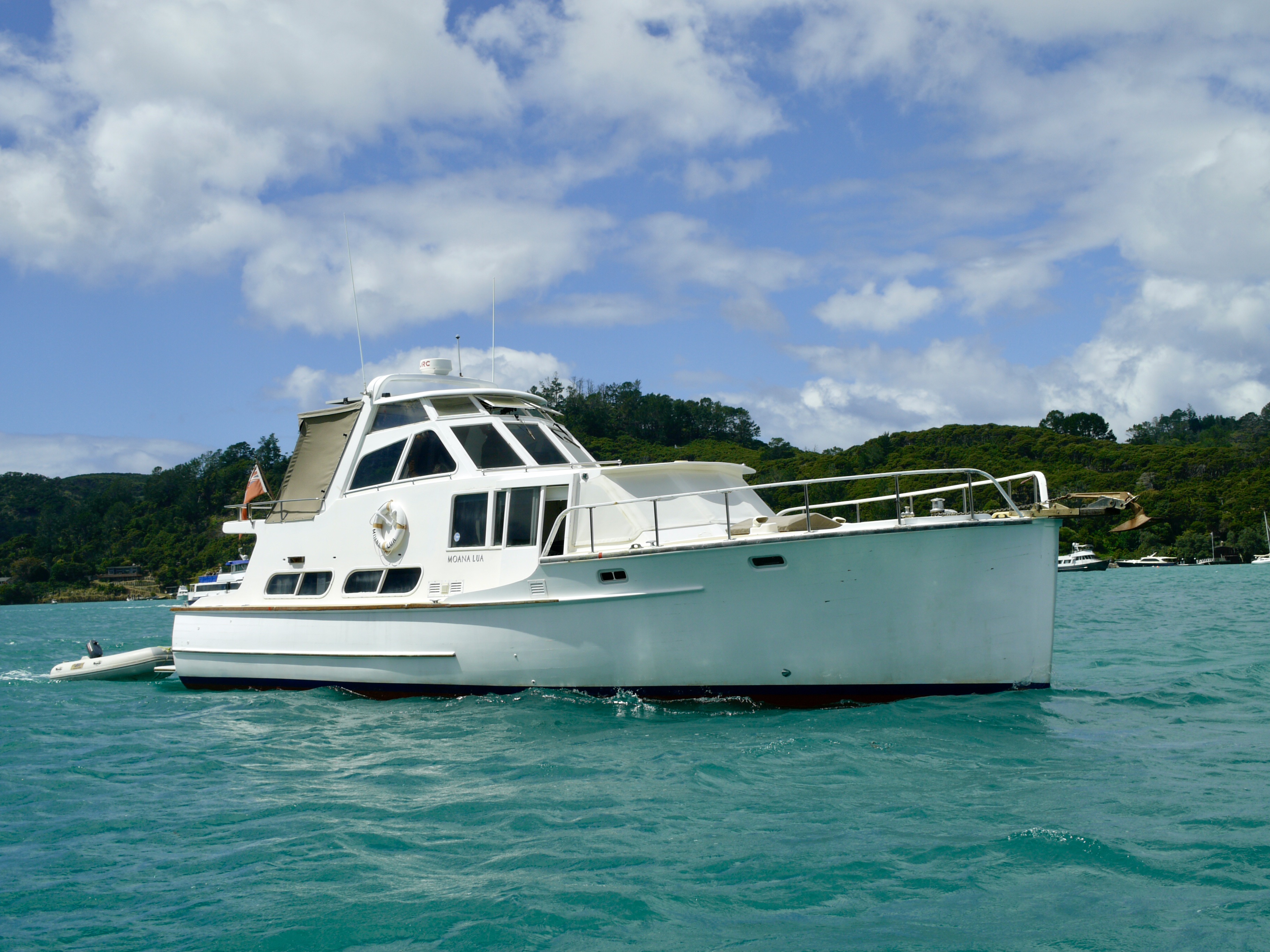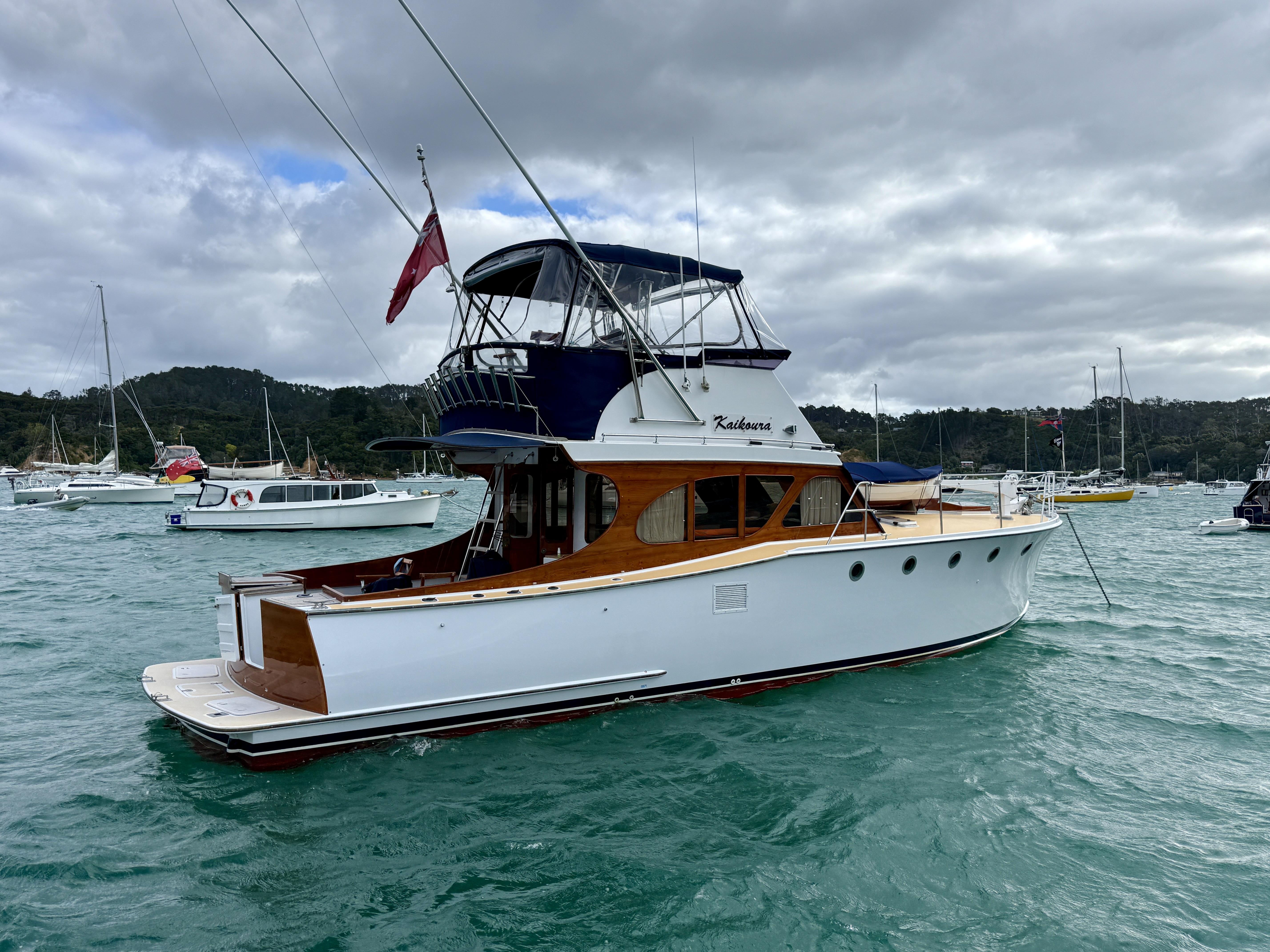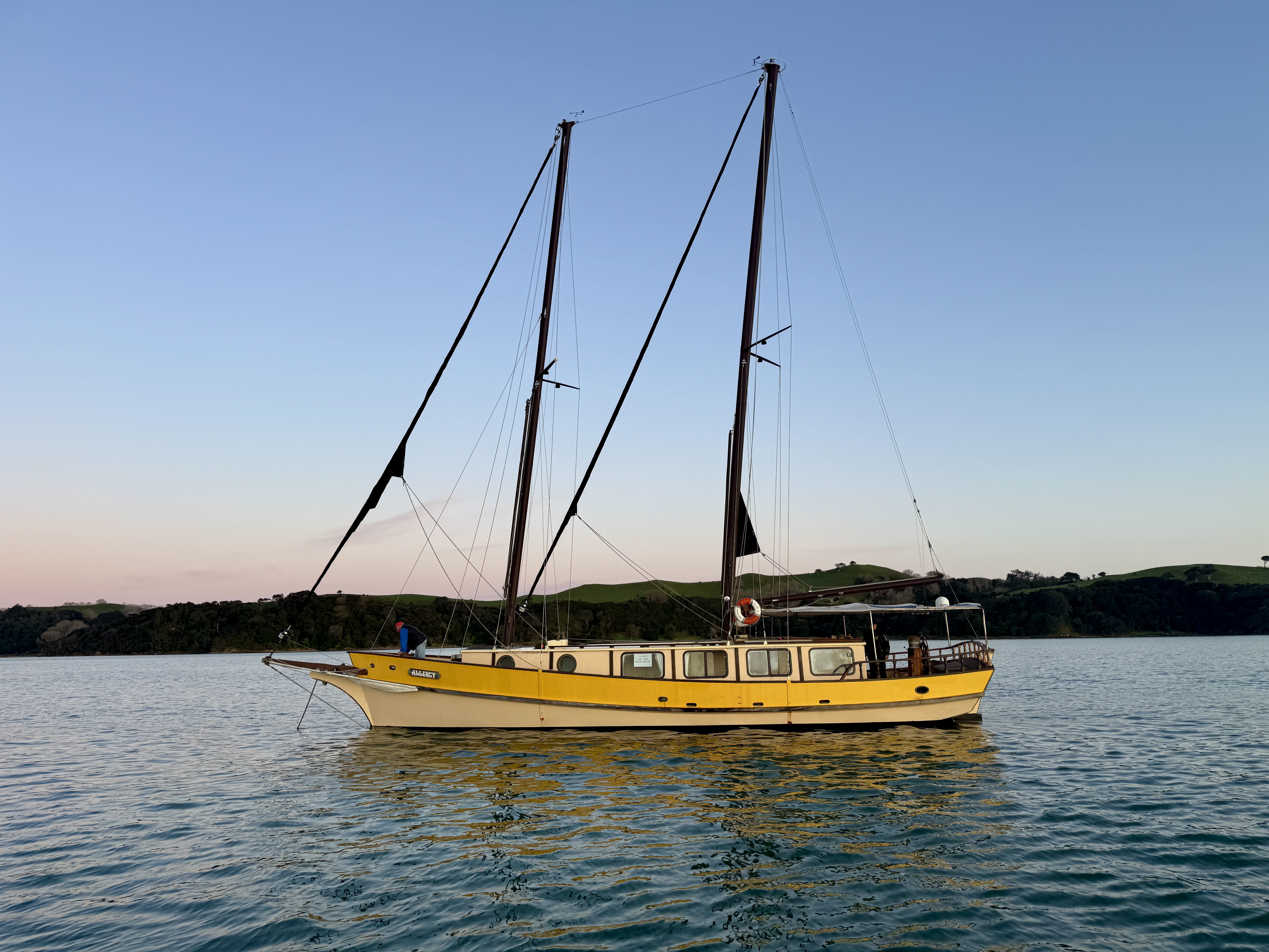 GUNNER was originally intended for work and fishing in the Marlborough Sounds. However, she was requisitioned by the Crown during wartime and transported to the Devonport Naval Base in Auckland for final fitting out. After the war, Gunner was sold and began commercial fishing out of Leigh Harbour. During this time, she also operated a mail run to Great Barrier Island in the Hauraki Gulf. Around 1957, Gunner changed hands again and continued her commercial fishing career from Port Ohope. In 1973, she underwent a 3-year conversion from a working vessel into a pleasure craft. This transformation included extending the wheelhouse and adding an aft cabin.