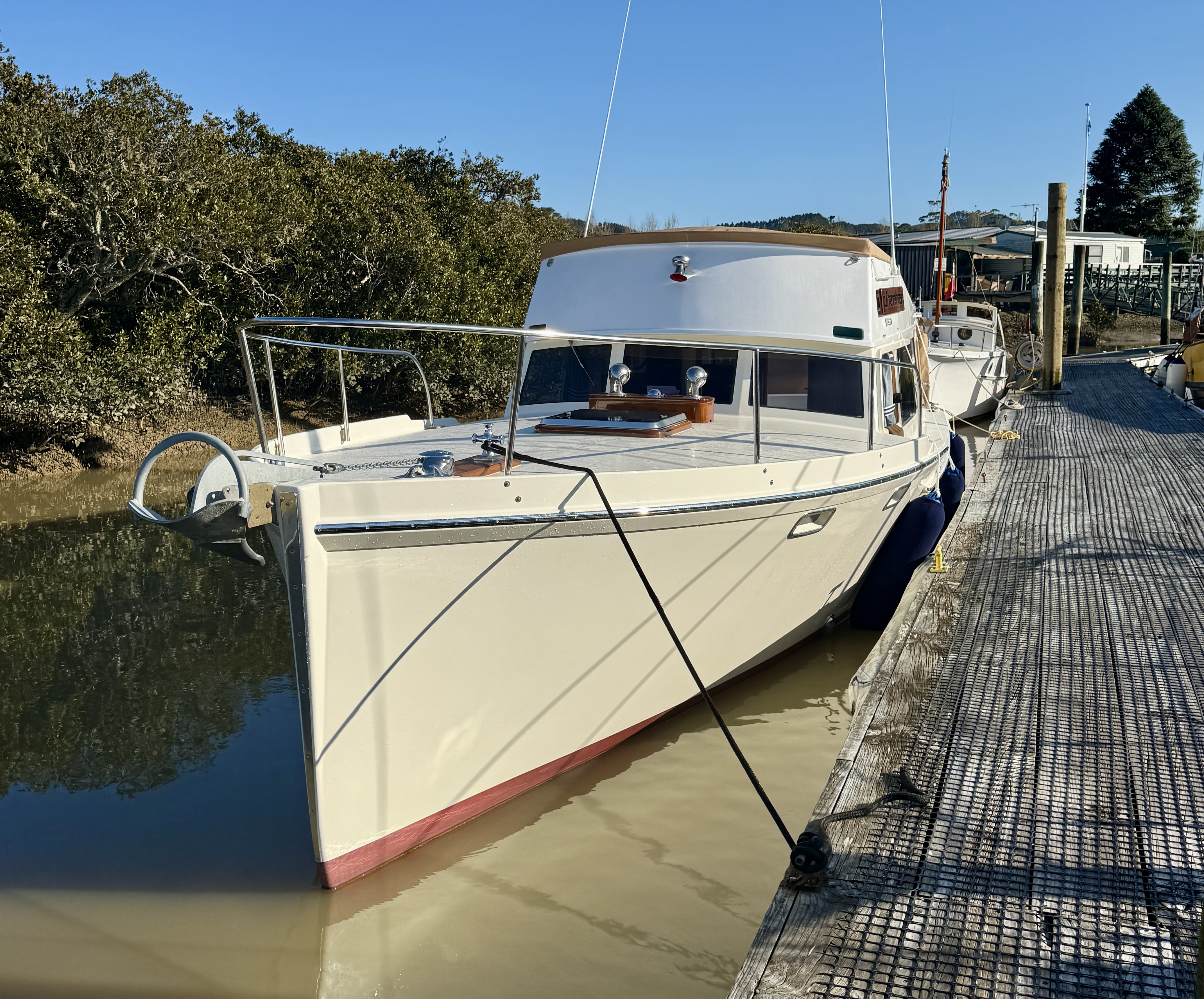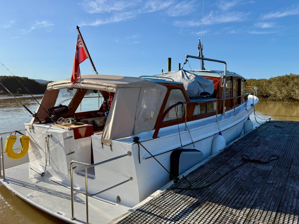 What we know – built in 1948 by Des Donovan and Fred Steele of 20th Century Boats for Fred Steele’s own use. The current engine is a 60hp Fordson 4 cyl. diesel, condition unknown.