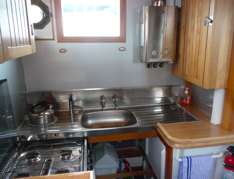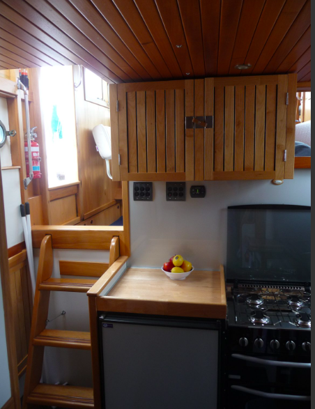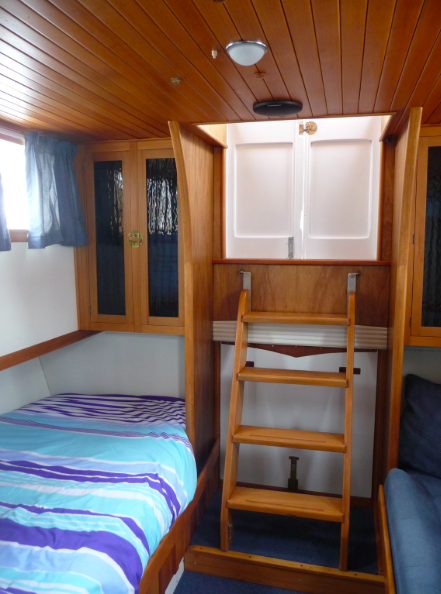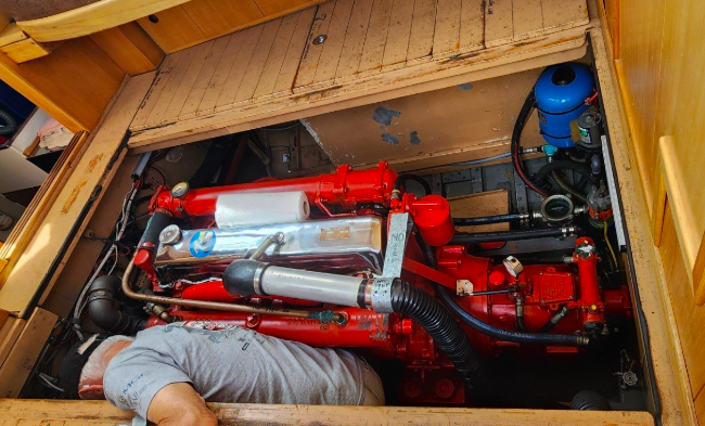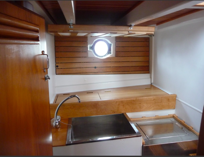 Today we get a peek down below. She is a solid old girl, 1-1/4” kauri carvel planked and powered by a 6 cyl. 100hp Ford Lees D series that give her a cruise speed of 7 knots. As Ian McDonald commented “crying out for a Gardner” 🙂