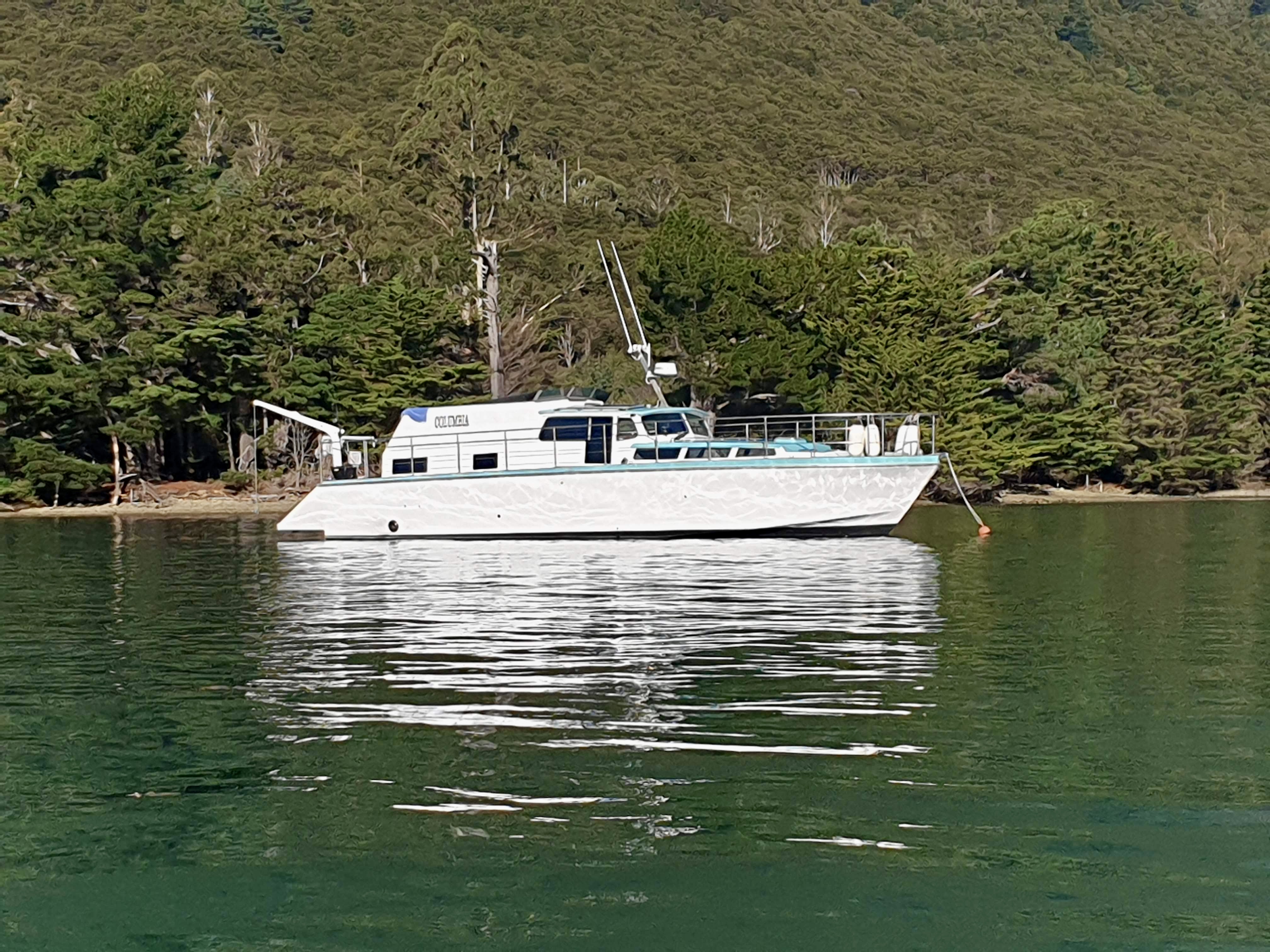 Jan 2020 ex Matthew Keys – Lady Tana was built for my grandfather Harry Keys by Oliver and Gilpin in 1971. He cruised extensively in Northland in the early 70s with Whangaroa being a favourite. Tana rock in the Kerikeri inlet is named after the boat after it struck the rock. Kelly Tarlton made the rescue temporarily patching the hole. The boat was sold to Warwick Ross in Tauranga where it stayed for many years. In the 1980s it was renamed the Khutze Cruiser and ran booze cruises out of Paihia for a while.