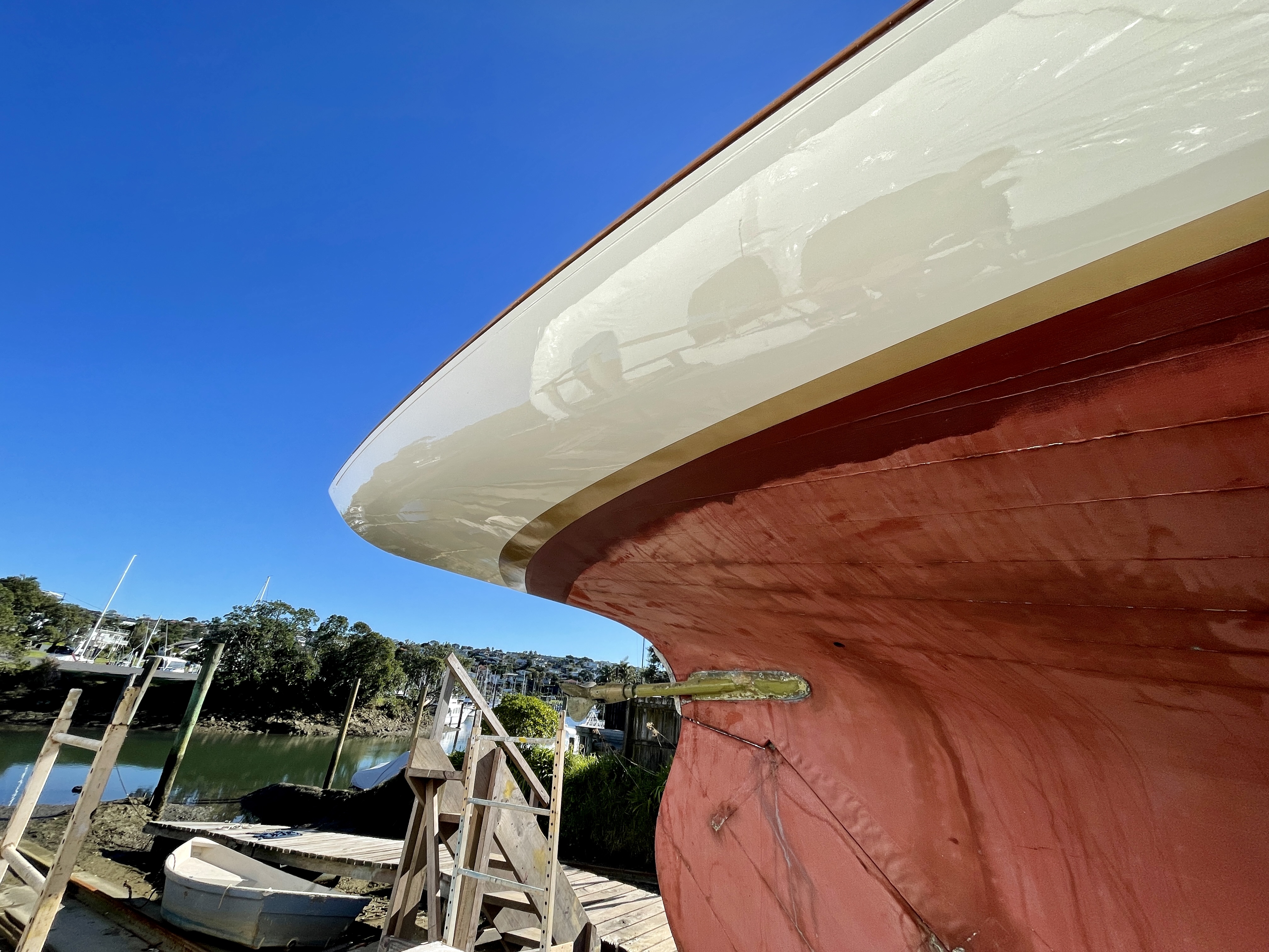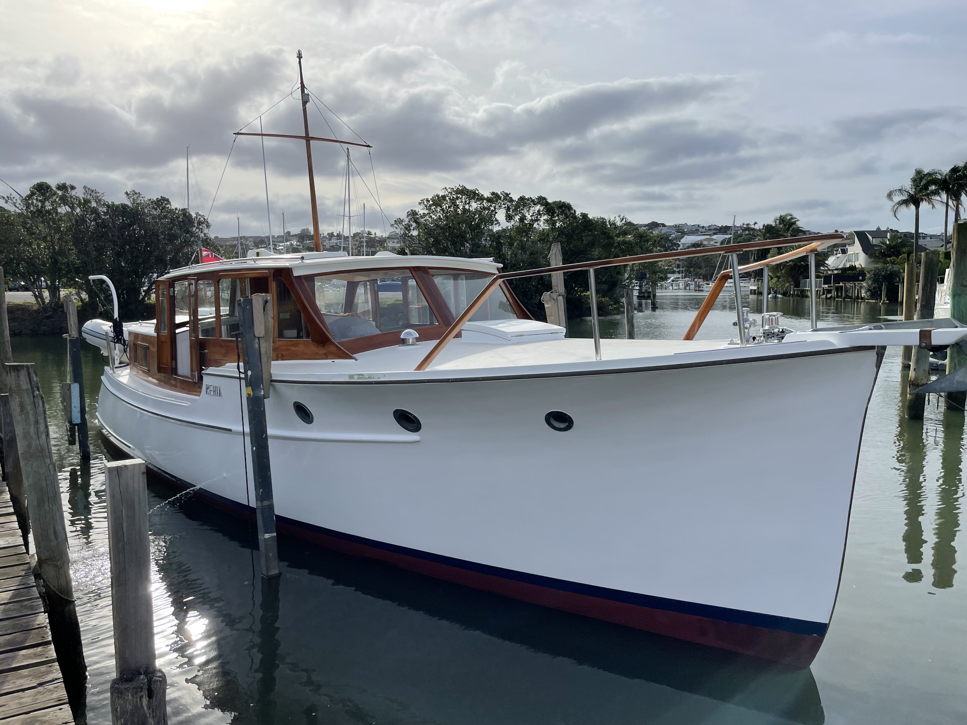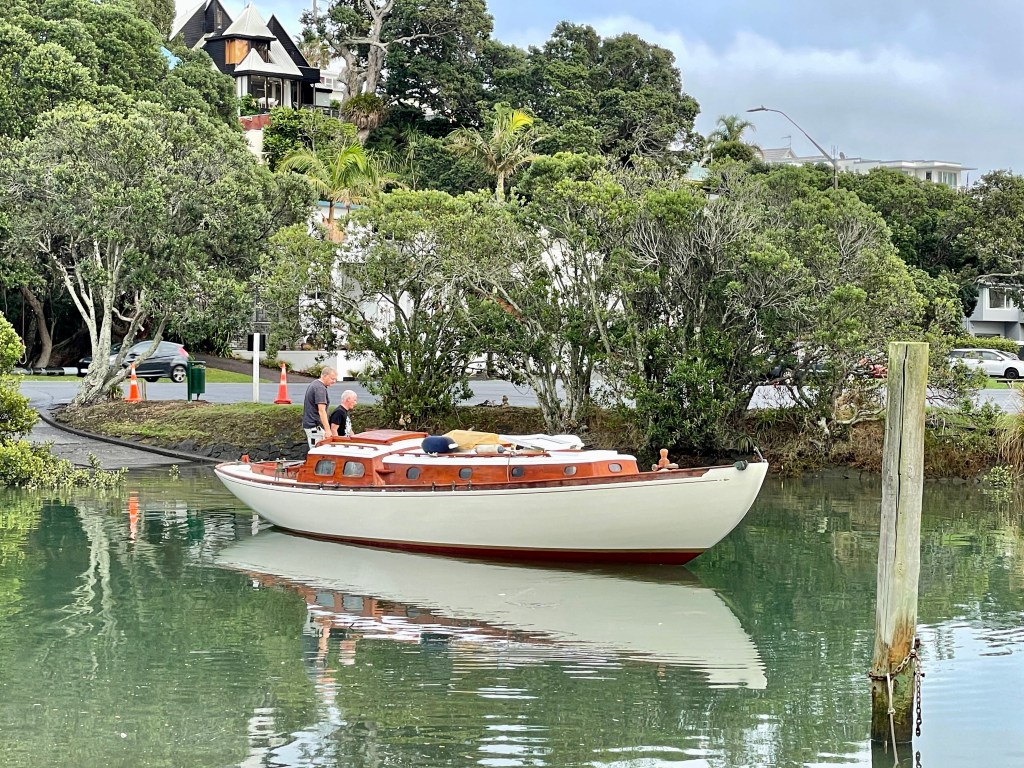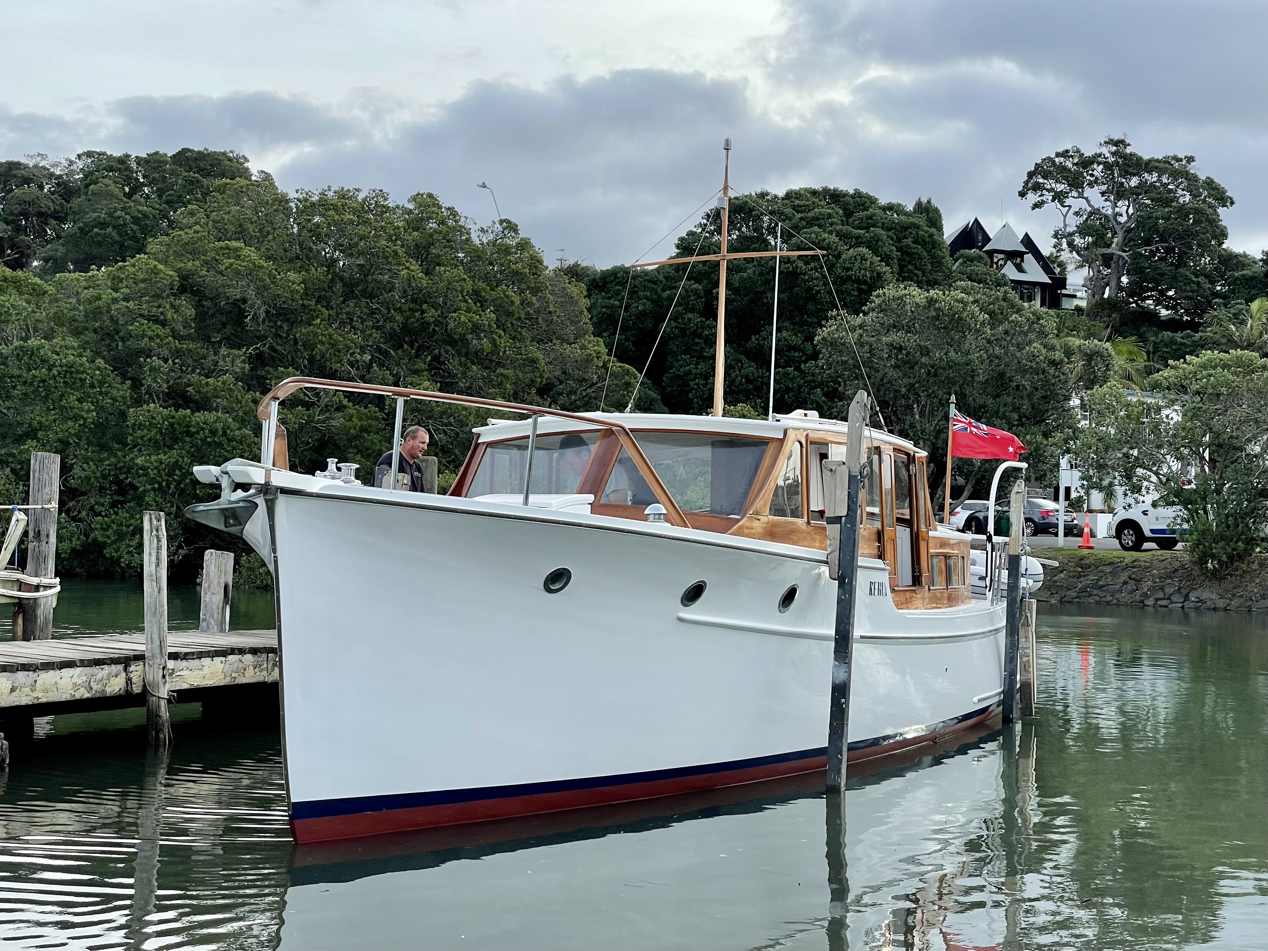 Back in Dec 2021 we advised that the 1939 Colin Wild launch – Rehia had a new owner and that she was hauled out at the Slipway Milford for some pressing systems work before her summer cruise. Link here to that story. https://waitematawoodys.com/2021/12/18/rehia-finds-a-new-home/
