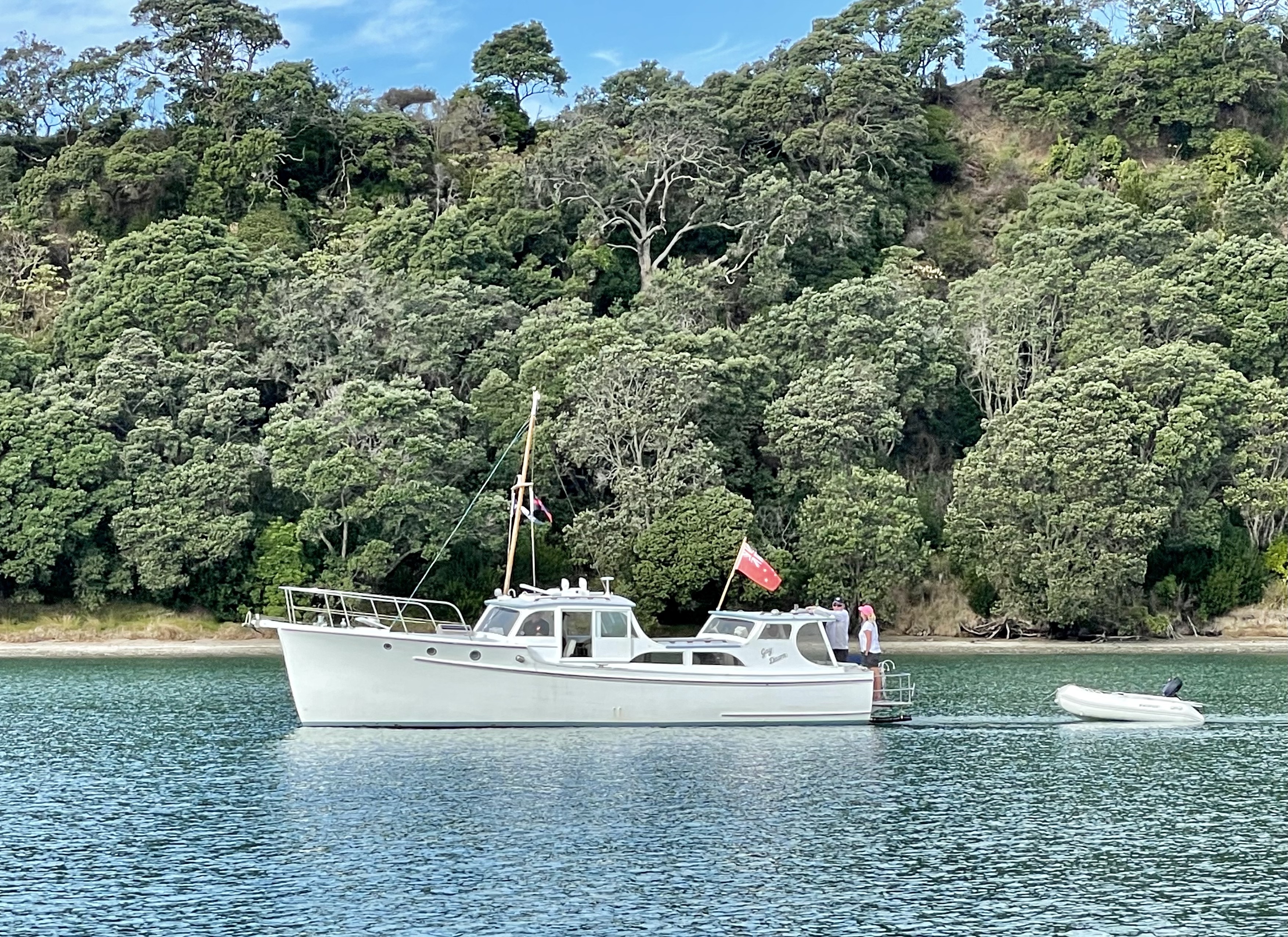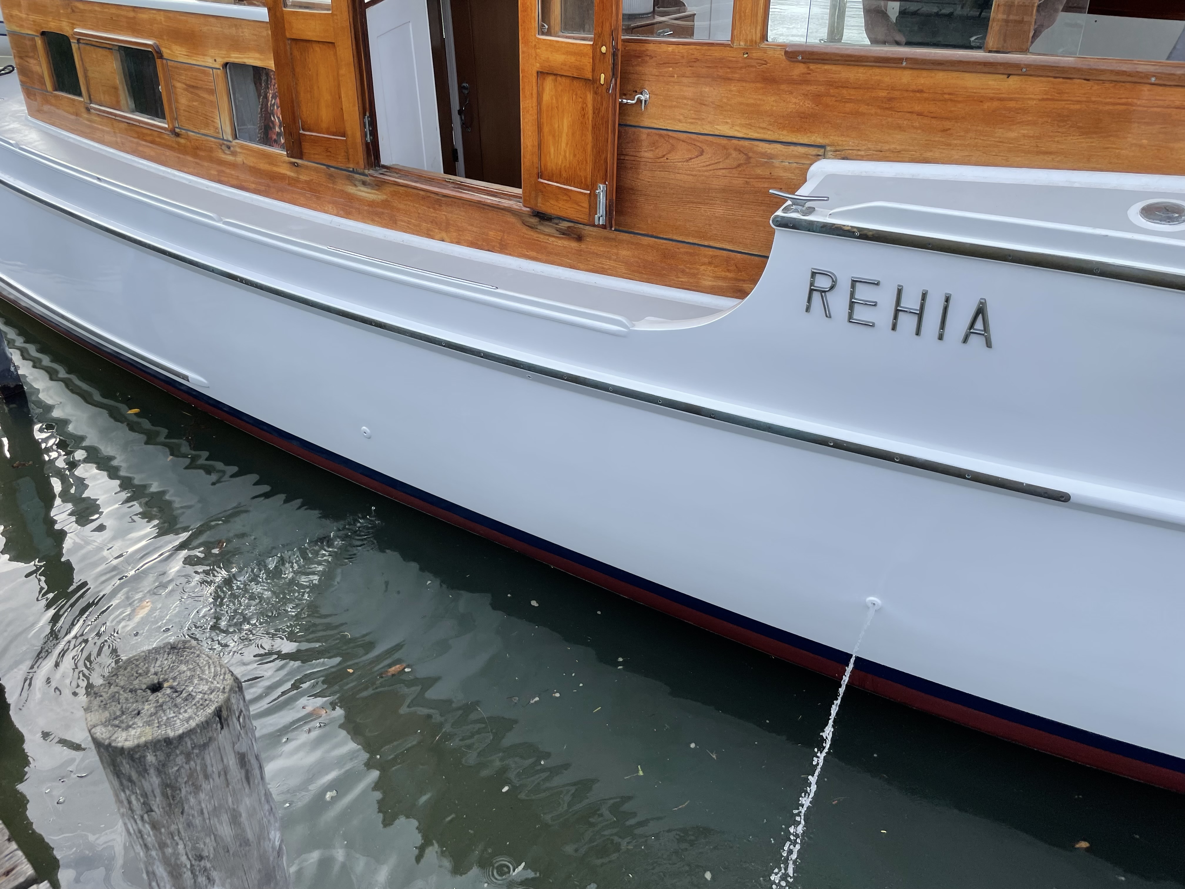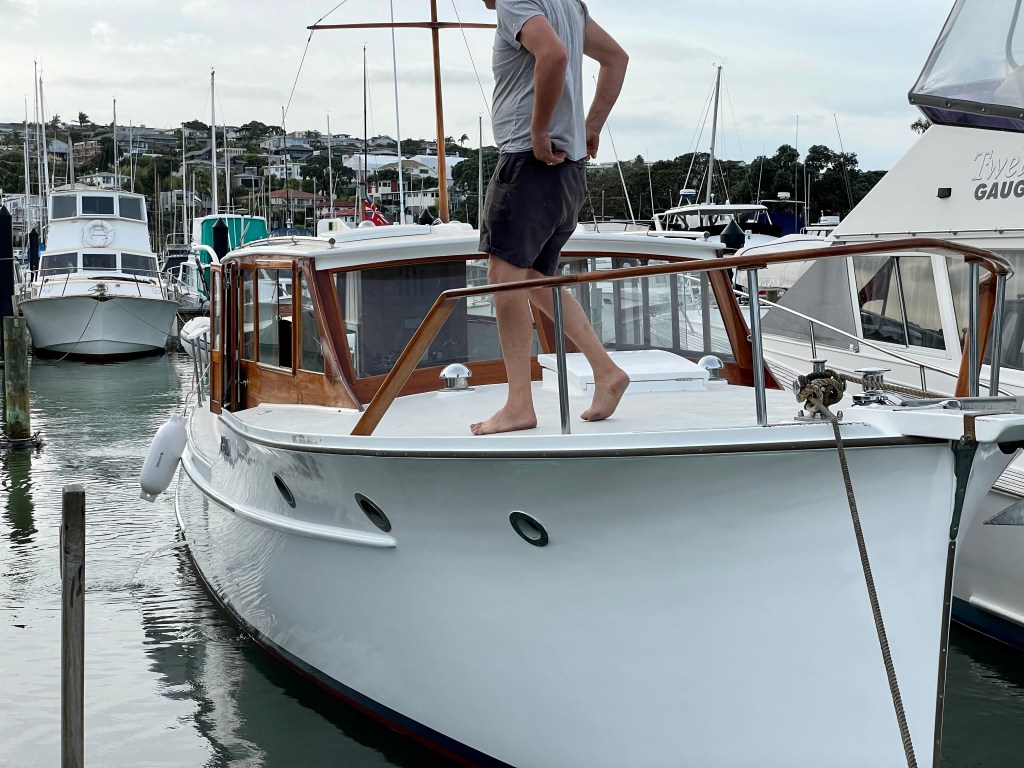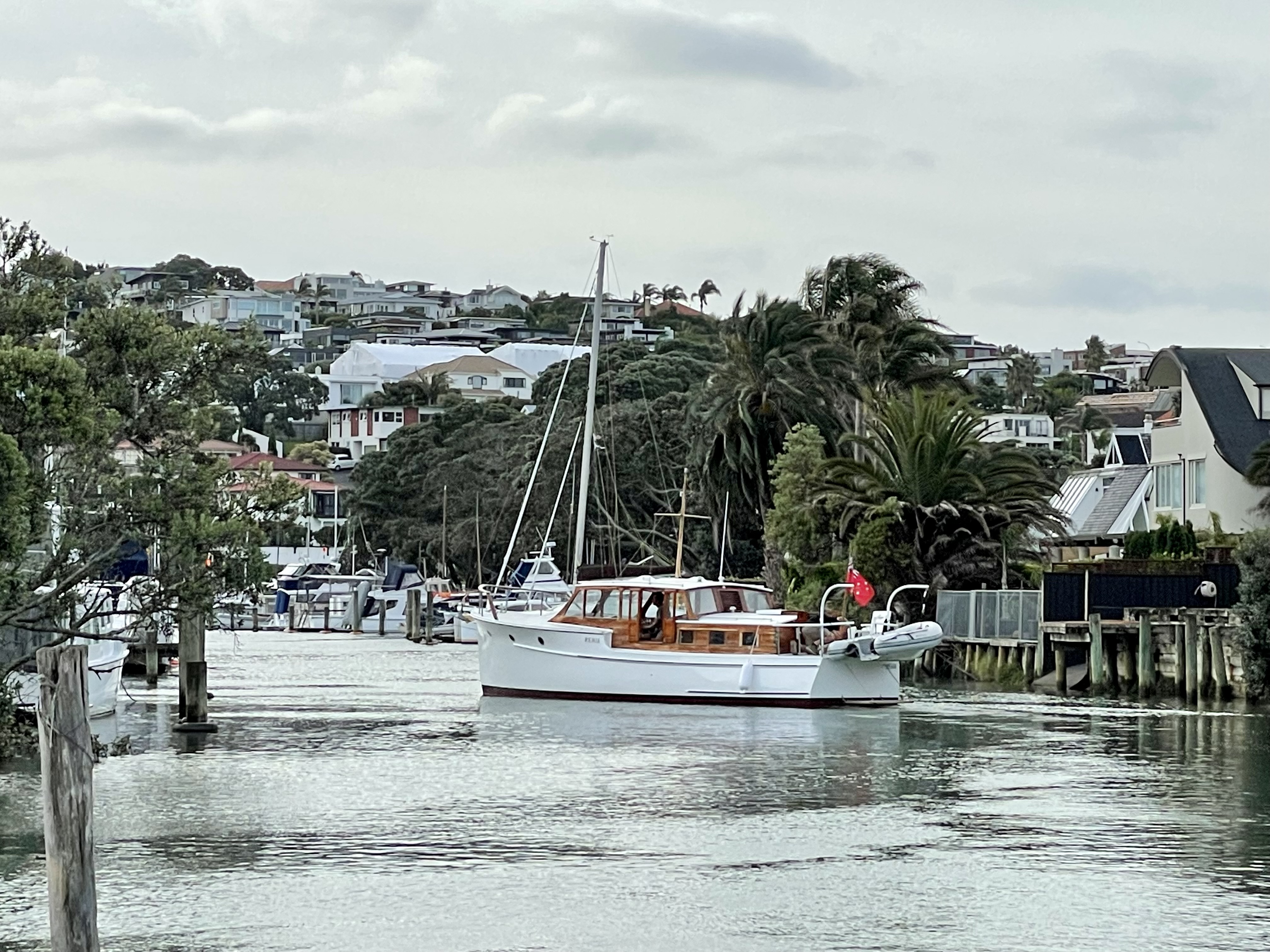 Back in Dec 2021 we advised that the 1939 Colin Wild launch – Rehia had a new owner and that she was hauled out at the Slipway Milford for some pressing systems work before her summer cruise. Link here to that story. https://waitematawoodys.com/2021/12/18/rehia-finds-a-new-home/