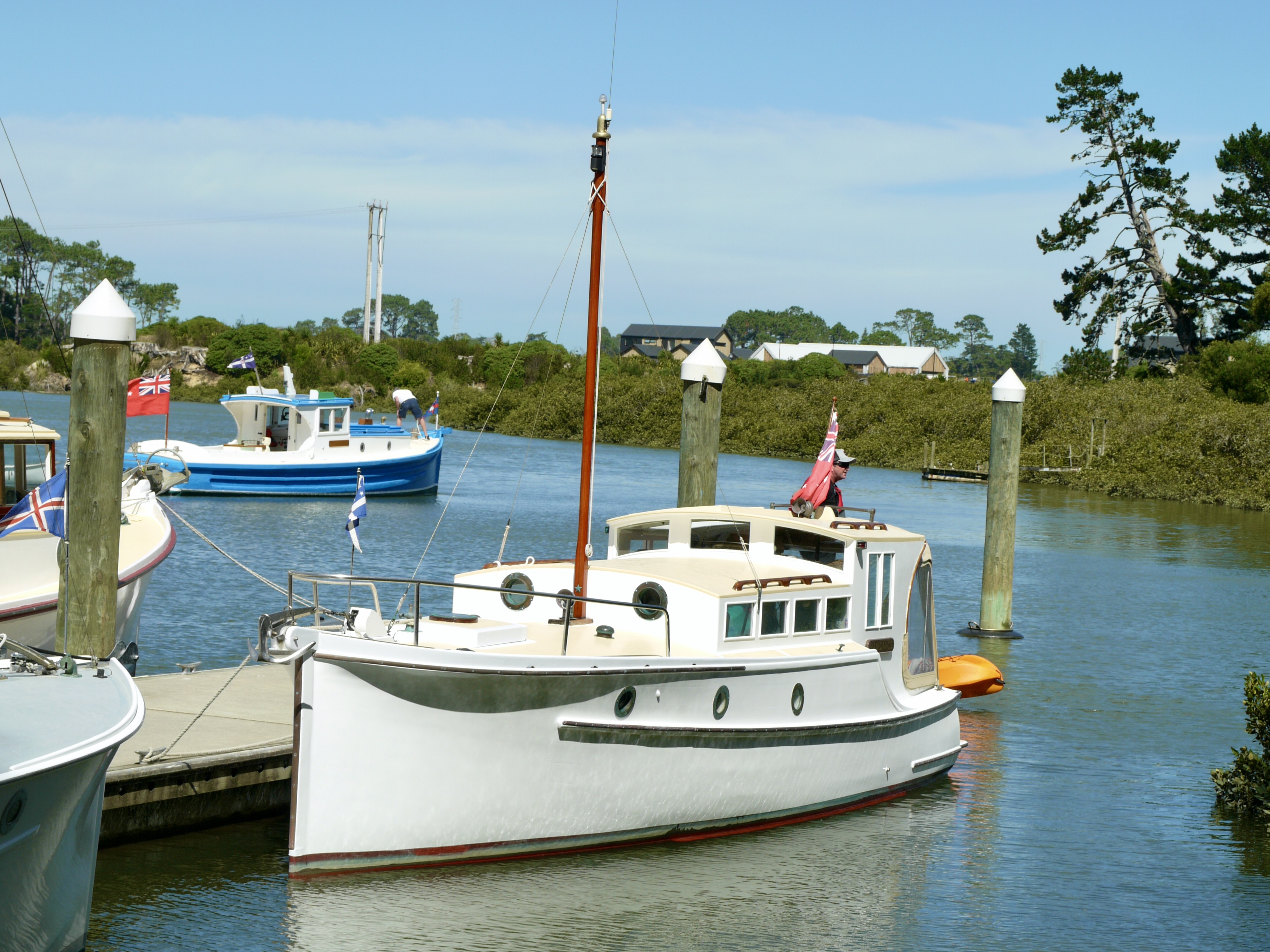 On the weekends Woodys Classic Weekend cruise to the Clevedon Cruising Club I had the services of a cabin boy (relax, he’s my neibour) so I handed the wheel to him for most of the trip up the river. This freed me up to snap some of the moored wooden craft, I’m sure a few might be f/glass or even steel – but still an amazing collection ’semi-hidden’ away, that us Auckland marina dwellers never see.