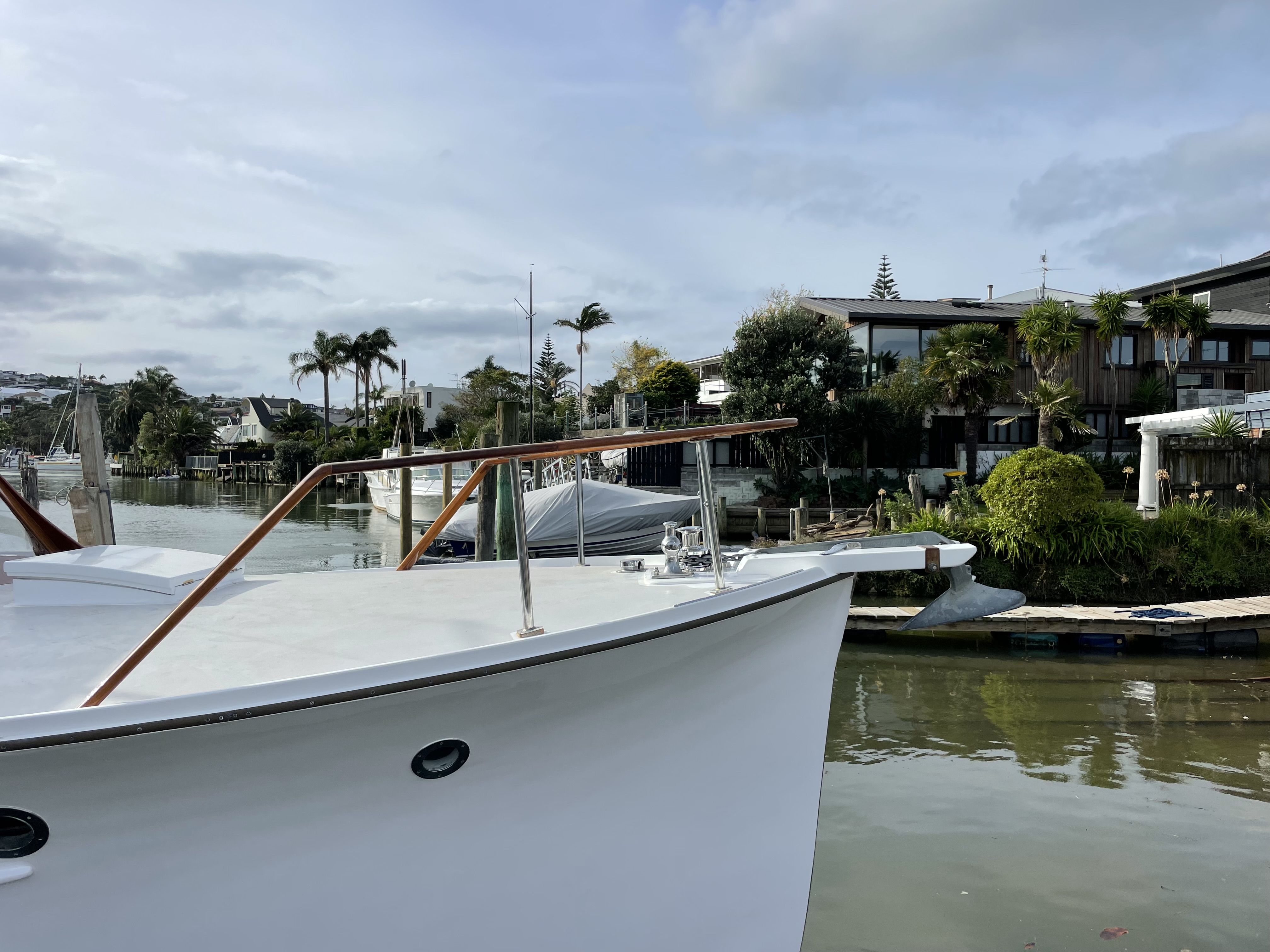 One of the classic launch owners returning to their berth in Westhaven from the weekends Woodys Clevedon cruise – spotted a wee hole in Little Jim. Comment was it had the dimensions of a bow-sprite.