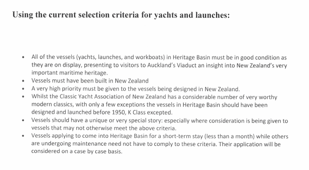 5. The new Heritage Basin discussion will be verbally rolled into an umbrella waterfront discussion – that we will be told will cover all classic vessels – I’m only interested in the Heritage Basin area – what should be New Zealand’s waterfront home of our vibrant , traditional classic wooden boating movement. The real loser in all this is the New Zealand public who will miss the opportunity to experience our classic boating heritage. Instead they will see a classic yacht ‘car’ park.
