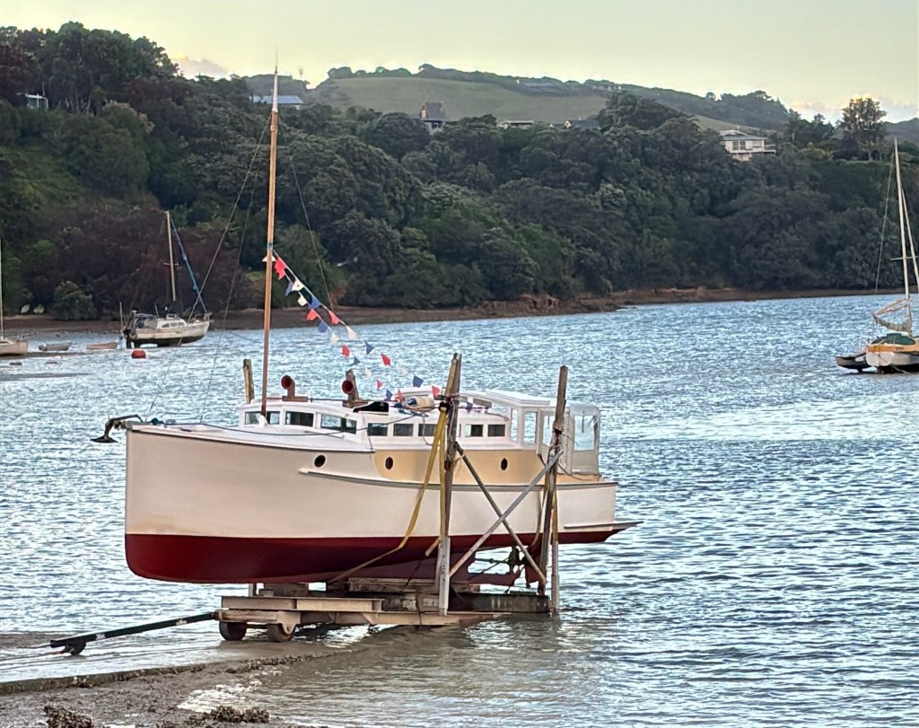 You had to be impressed with how quickly Davey disappeared into the engine room of the 100 year old Kelvin and soon had her all fired up ready to take us home. We had a lovely put-put back to North West Bay. After opening up the house we had a meal and a couple of beers with Davey before he trampled off back home.