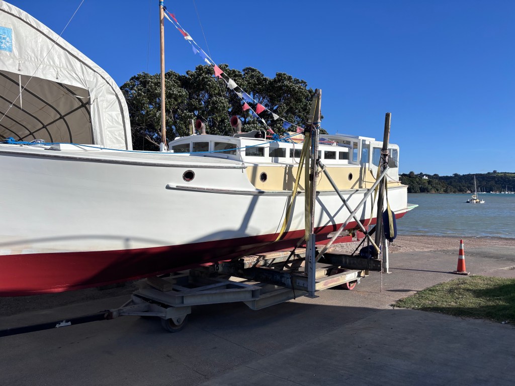 Another treat in North West Bay was to see one of the little boats that were part of the Wahine rescue fleet. Pugwash is sitting in a garage there still resplendent in what I understand to be Giant Paints special mix of “AA yellow”. Tony Coard, our host in Northwest Bay, had been skippering his Dad’s boat Pugwash as part of the rescue on the day.