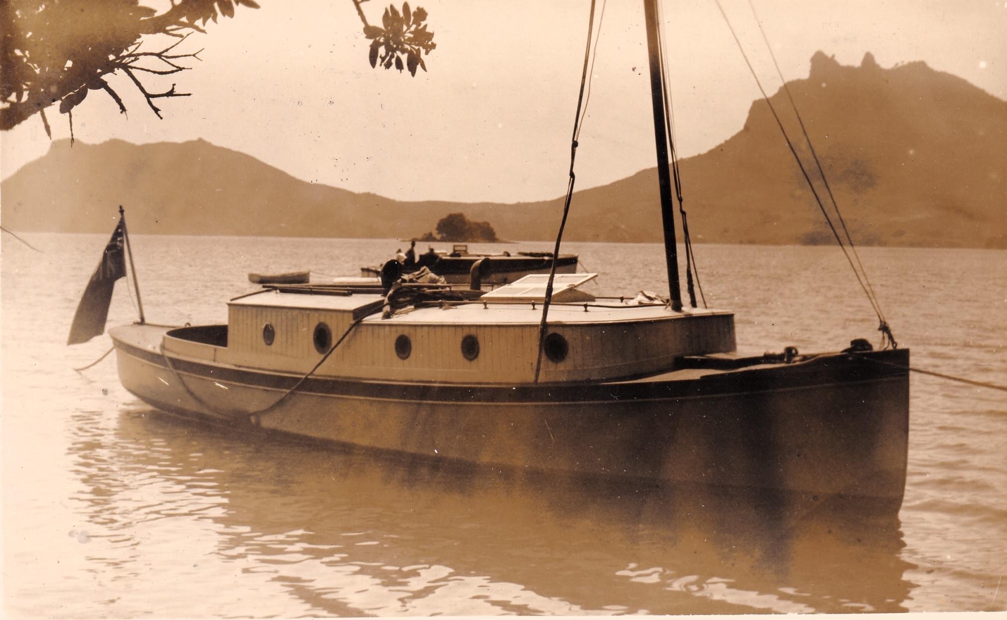 Others commented that it was actually Urquhart’s Bay with Calliope Island in the mid background. Also a suggestion that the boat was named Moerangi, an ex Mail Boat owned by Leonard Harnetts.