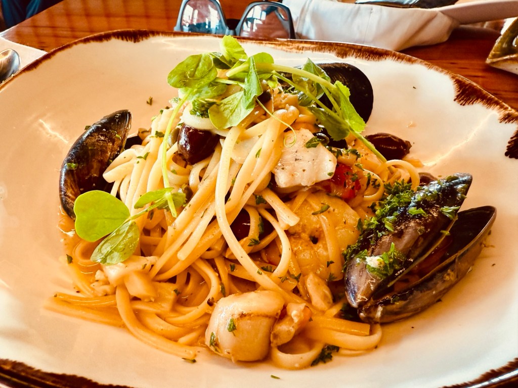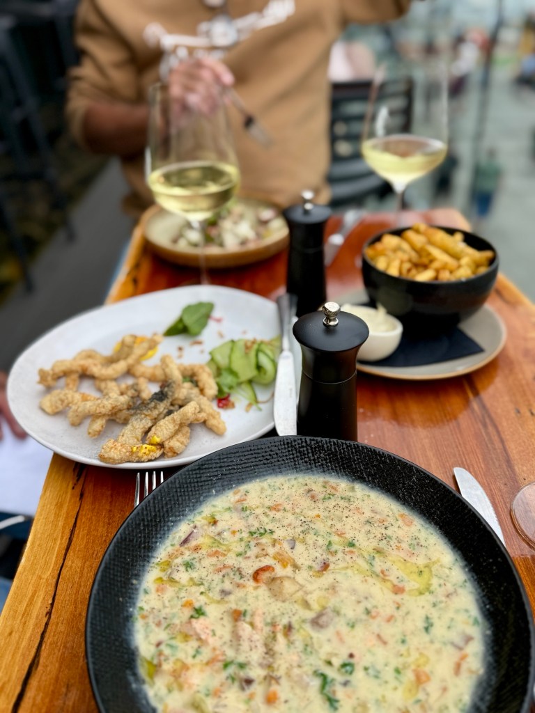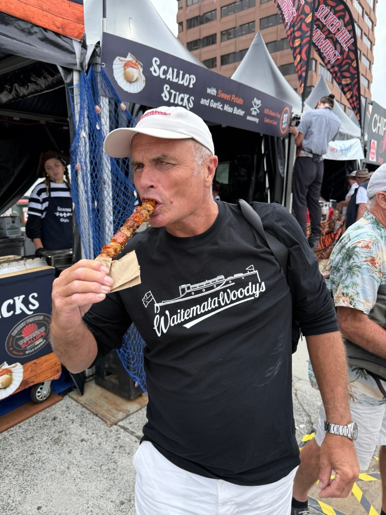 And there is always a few foody pix – hands down the best two seafood fritters ever – one mussel and the star – one whitebait. And a free KOWHAI coffee because she liked my WW t-shirt.