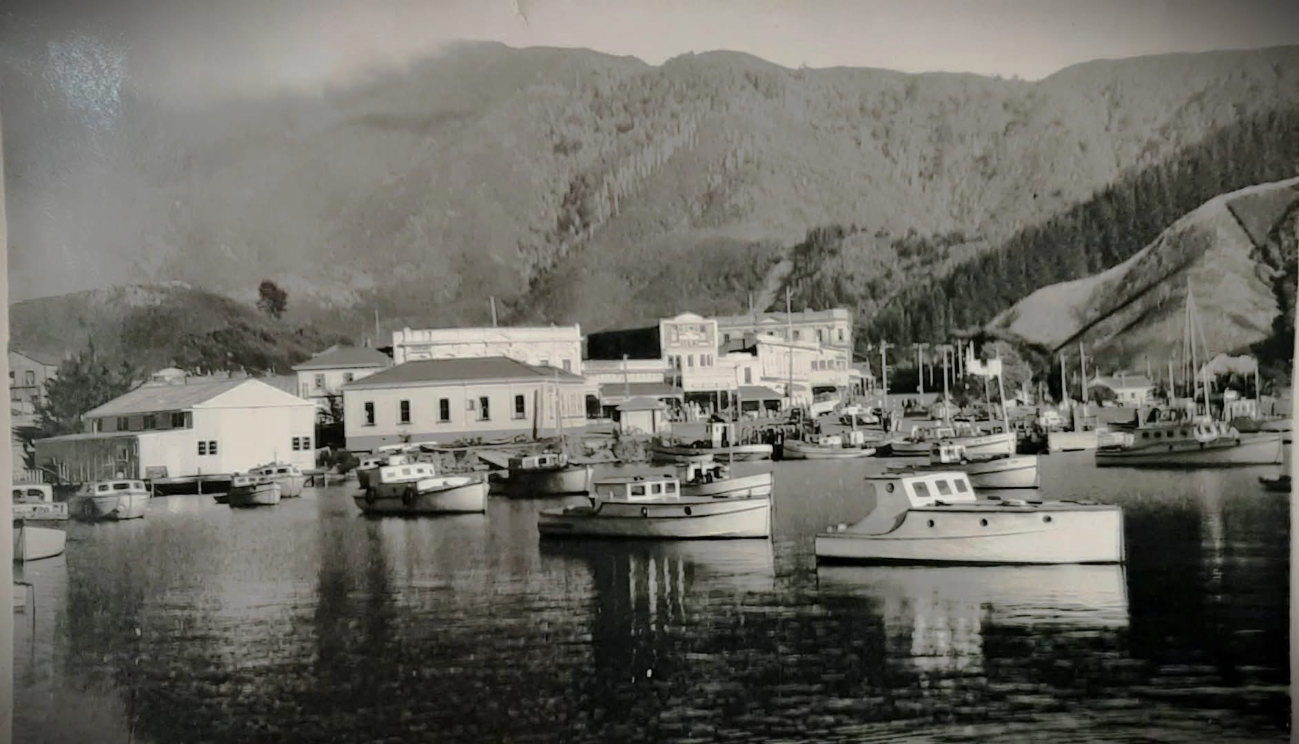 Aside from being a rather good b/w photo – the interesting thing tome is the number of smallish classic wooden launches moored.