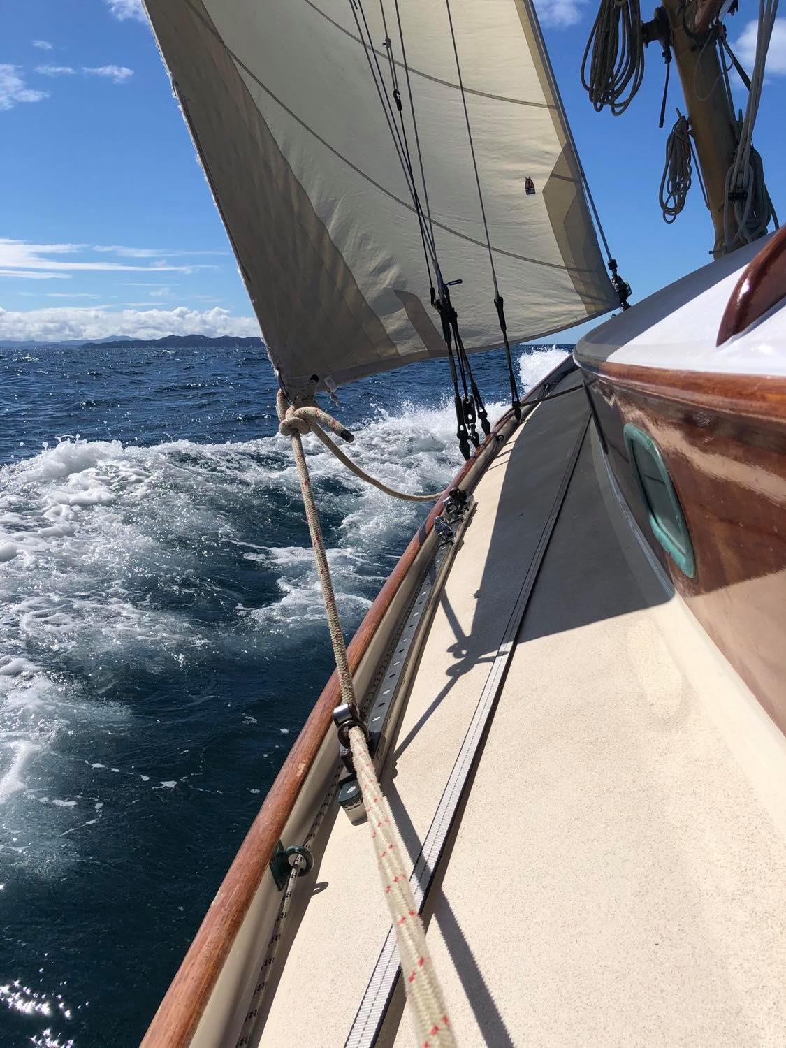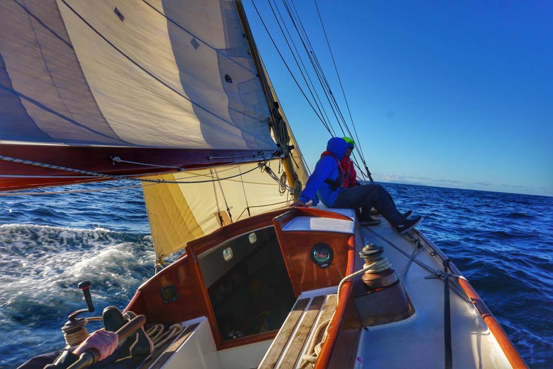 “After four long months out of the water at the Milford marina yard over winter, I know that Little Jim had been wanting to stretch her legs and get a good long sail up the coast. She feels fast with her newly reinforced decks, rebuilt rudder, and all over paint job. Or maybe it’s the long winter without any sailing that has made her crew push her along that little bit more.