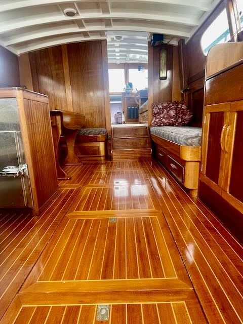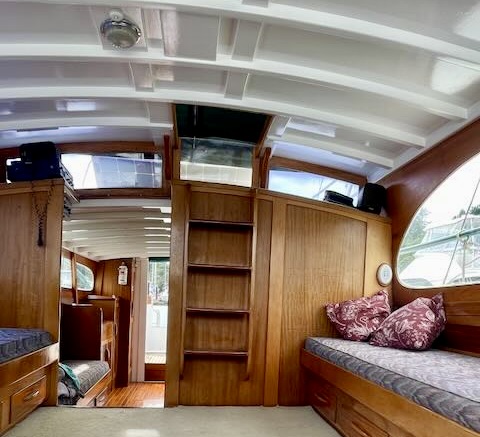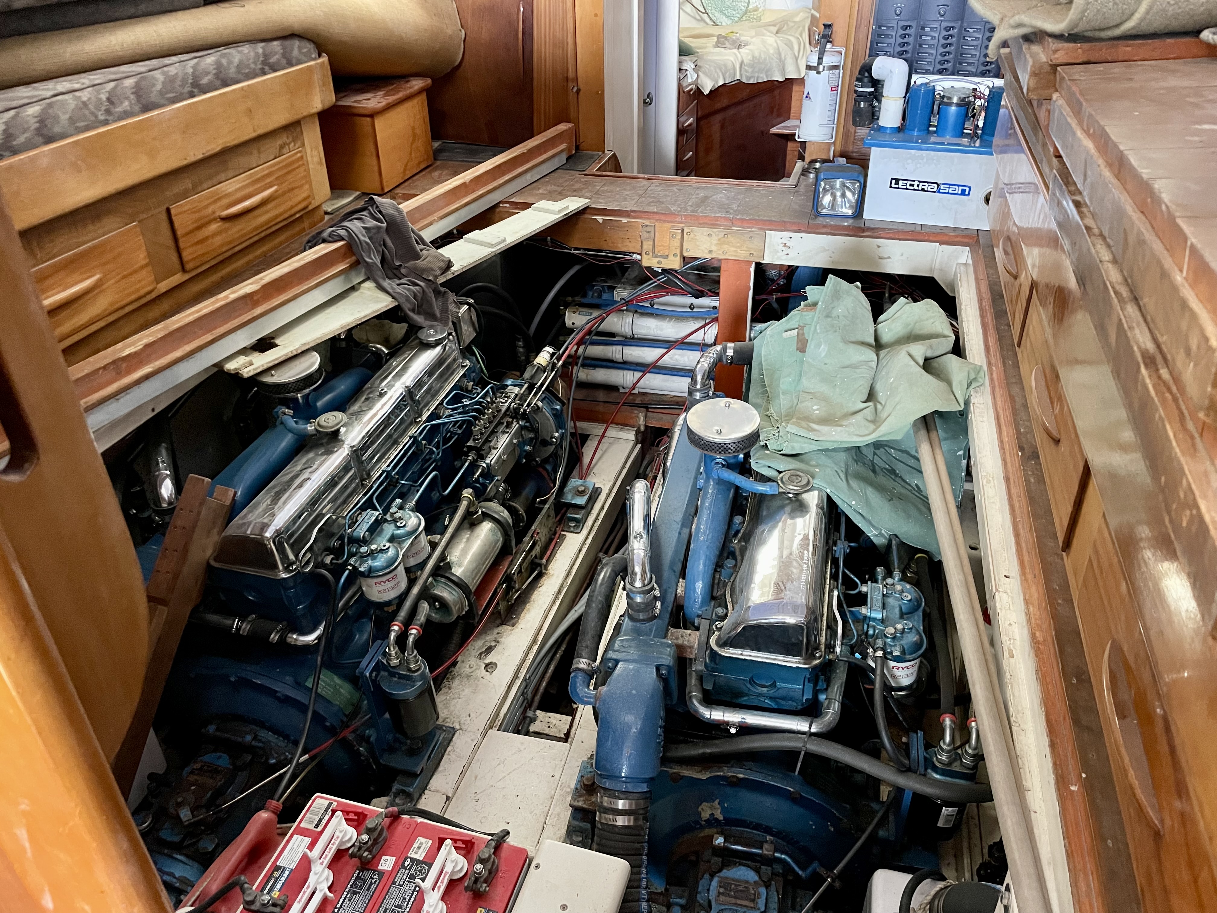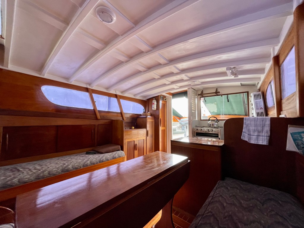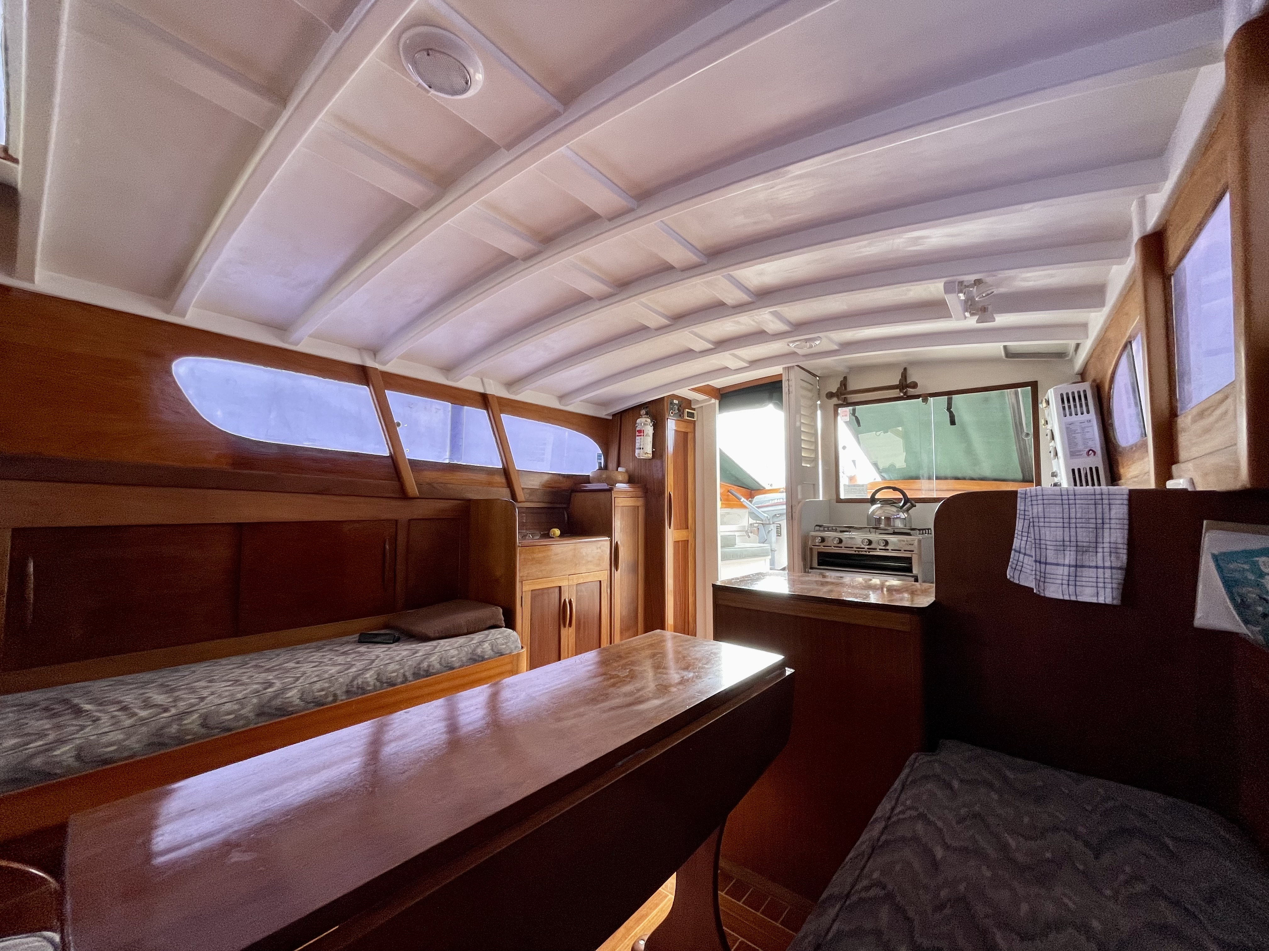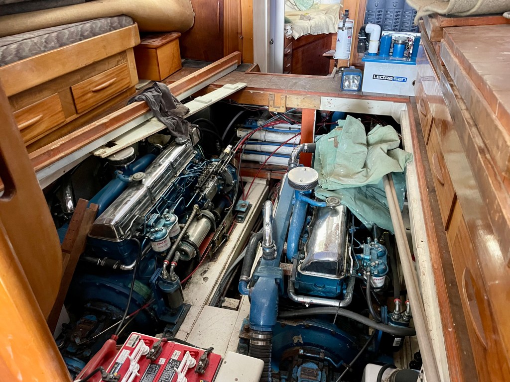 Whats especially compelling about Adonis is that she’s ready to use today, hop aboard and the adventure begins. It should be an easy sale – we have on hand an out-of-water survey + mechanical report (including oil test analytics) on the twin 120hp Ford engines.