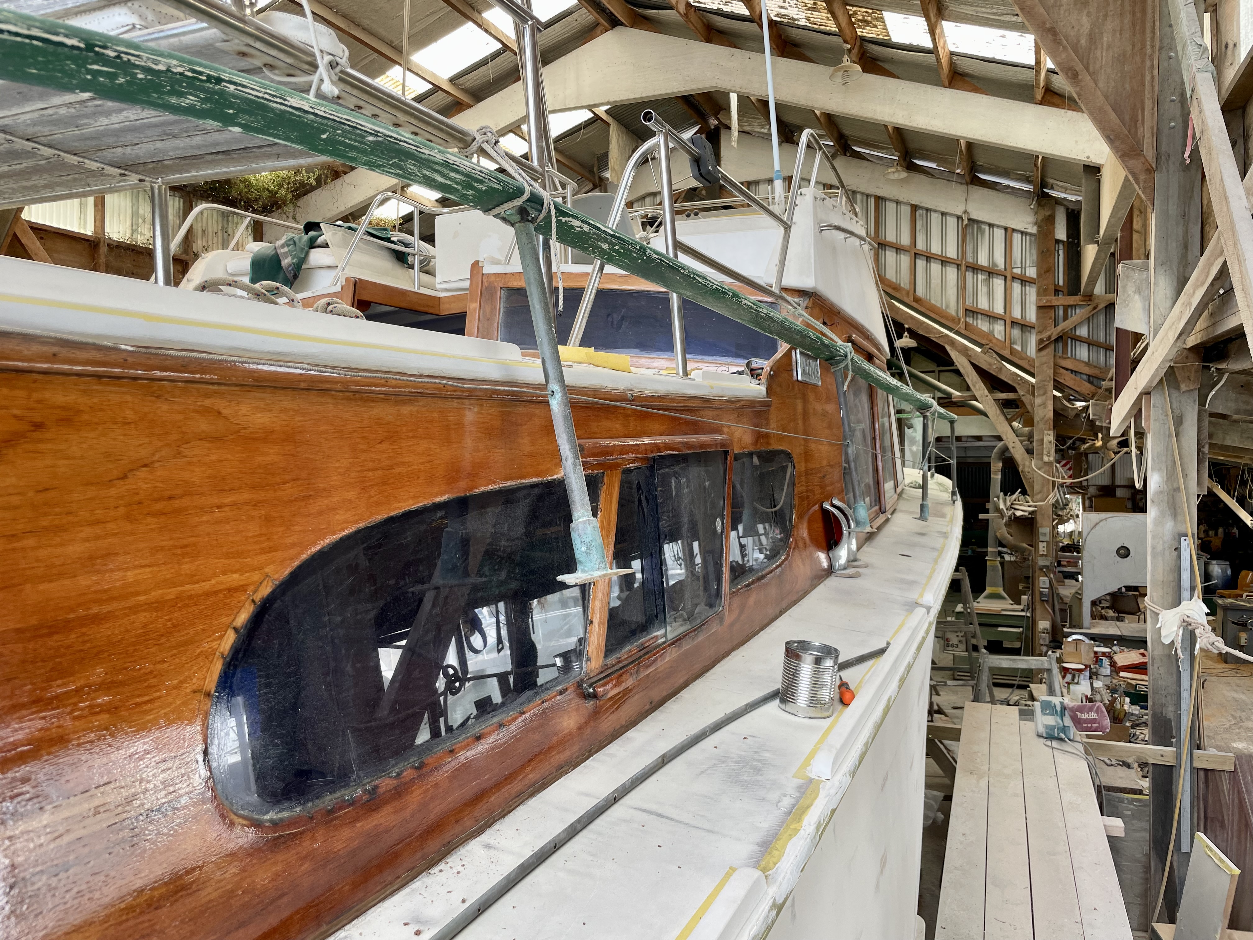 As with most things in life, boat ownership goes in cycles and with new owners she is get the attention she deserves. Always nice to see painting prep well executed i.e. back to bare wood – that kauri looks as good as the day Sam Ford fastened it.