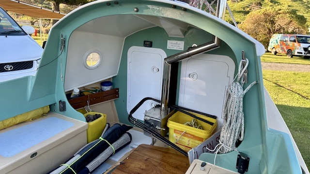 With a clean sheet (no bulwarks – no guard rails) she was equipped with two cabins – fore and aft of the centre hold.