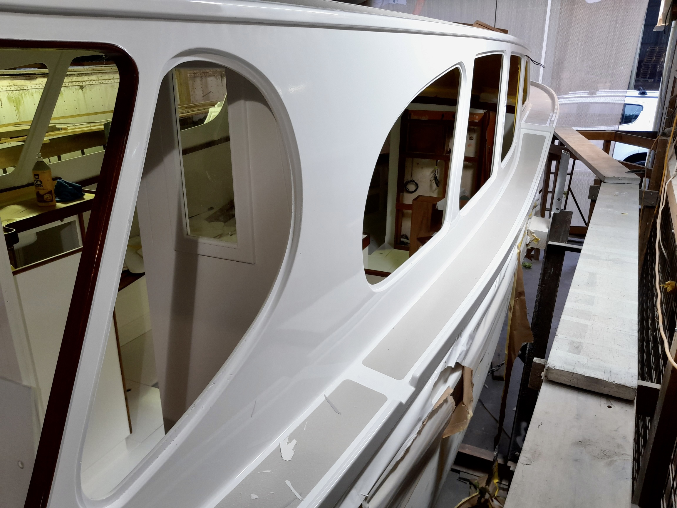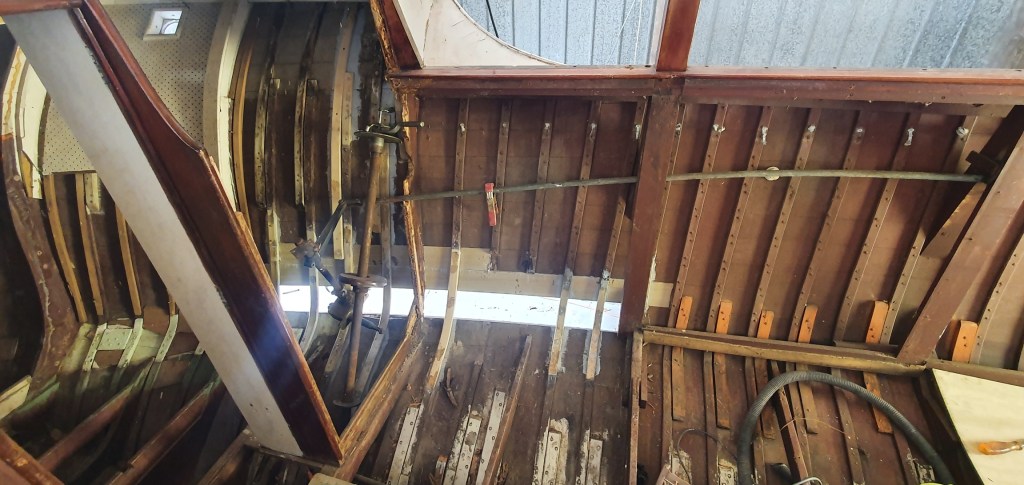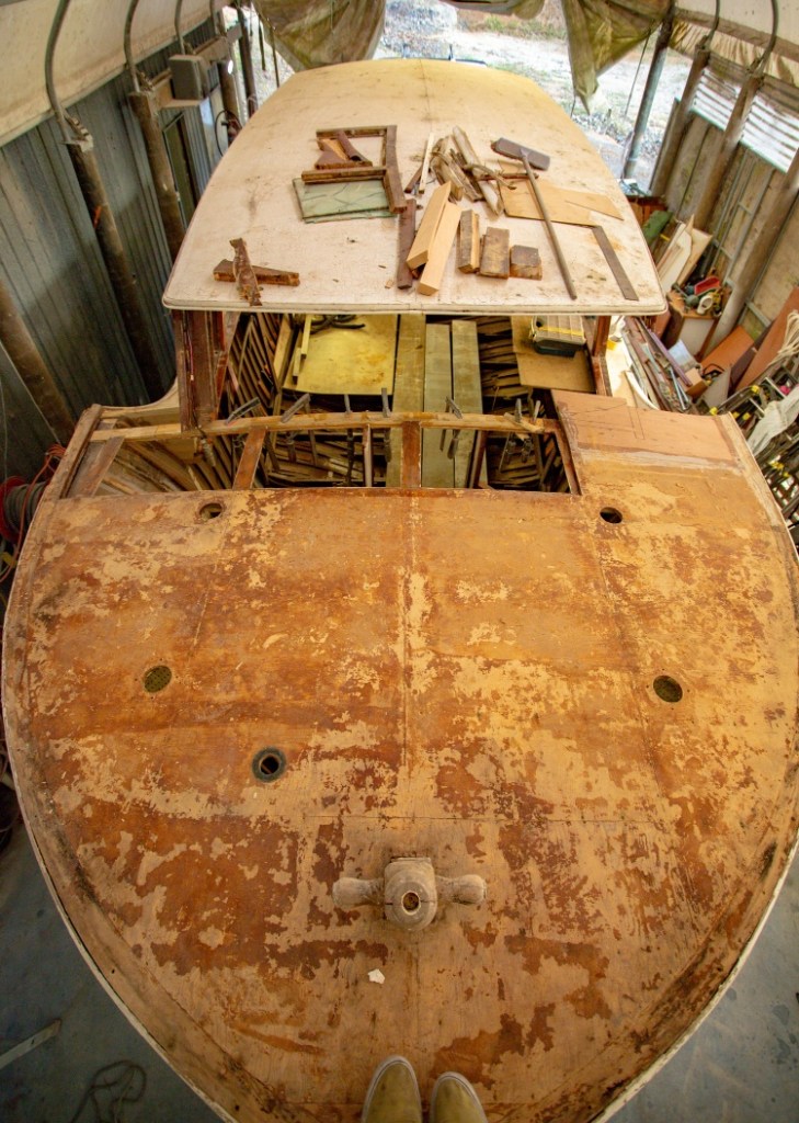 The original cabin and deck were too far gone to be reused but the parts made excellent pattens for the new cabin in Sappele Mahogany.