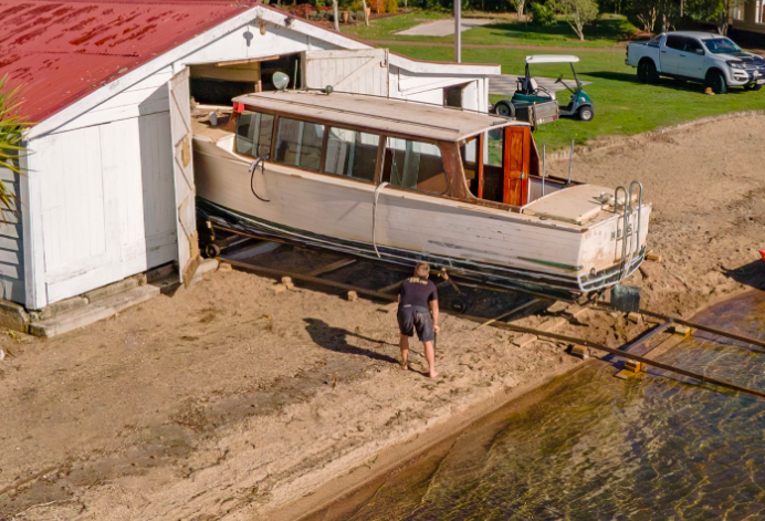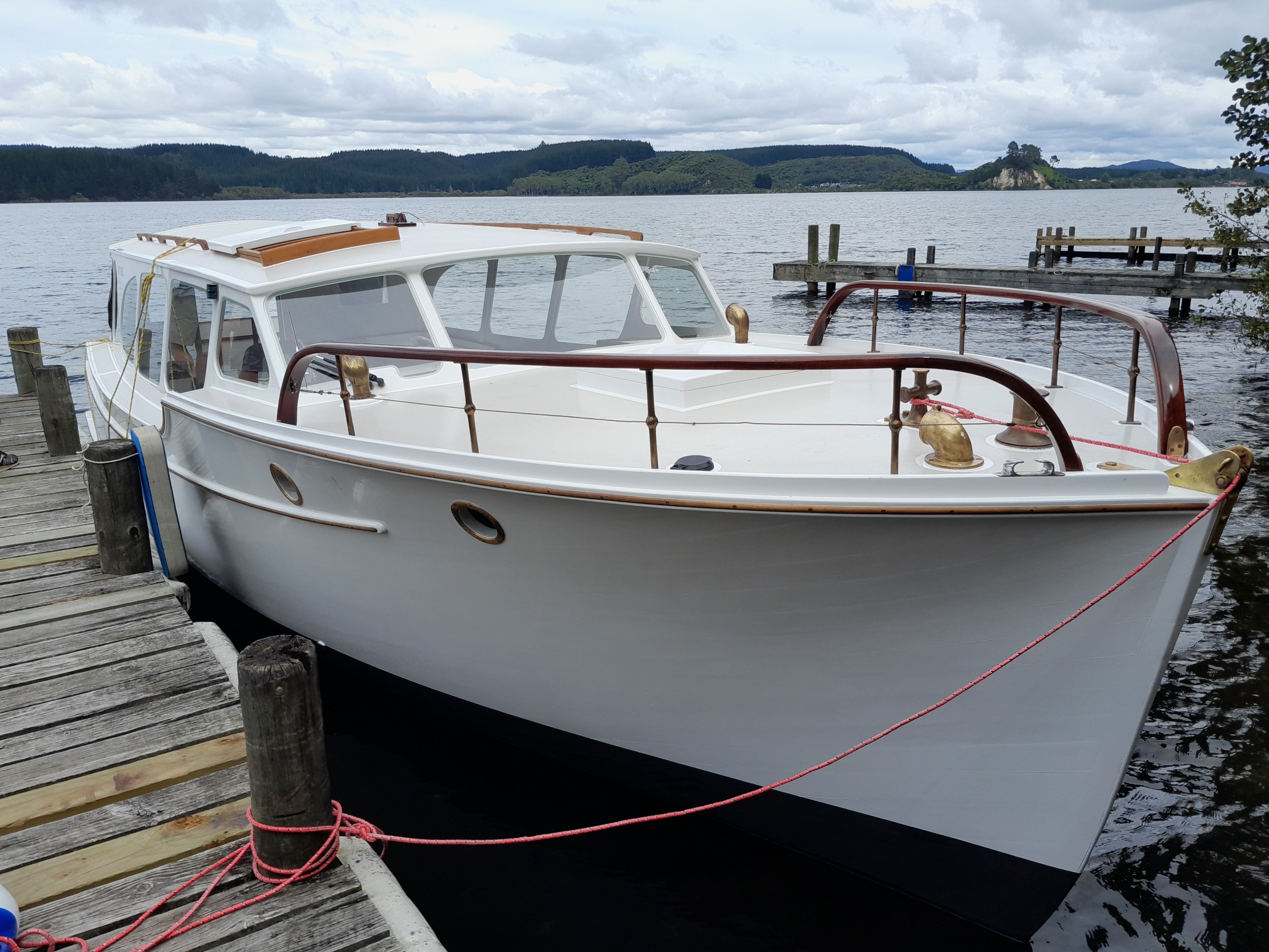 “Back in the 1962 this boat was commissioned as a new build by the Govt Internal Affairs Dept as one of 4-5 Seacraft boats to be used for a visit by the Queen Mother and her party to Lake Taupo. She was to have arrived by Sunderland flying boat and taken ashore in one of these boats and later taken out trout fishing. This visit was unfortunately cancelled I understand due to a health problem