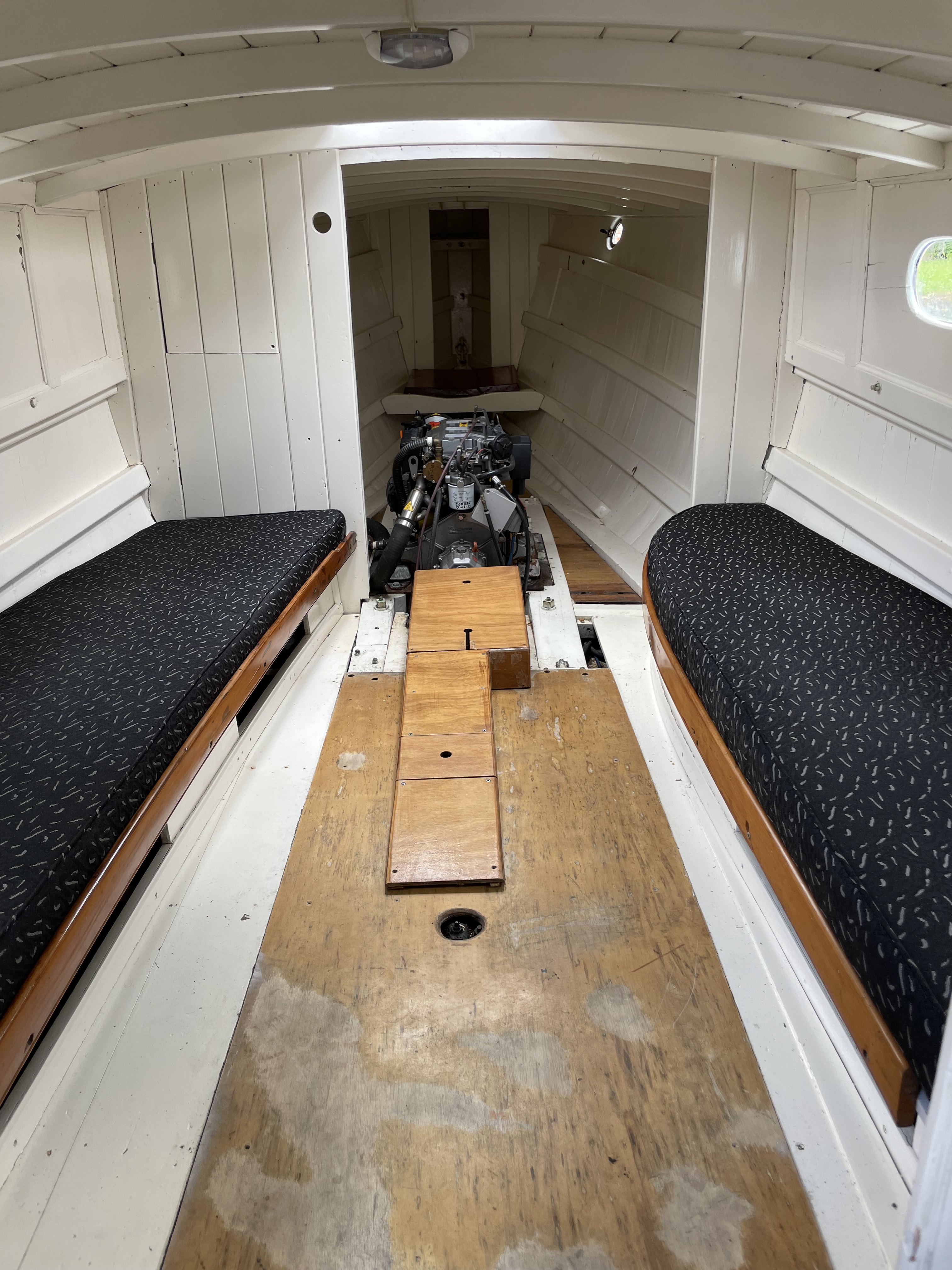 The boat was unique as it was the first hull built to a new modified design with a double skin bottom, a diagonal inner and a fore and aft outer skin rather than the original clinker bottom of the previous boats. This was to give the bottom additional strength to take the power of twin Ford Consul inboard engines. This info has been confirmed in an email communication to me from Lionel Sands CEO of Seacraft.