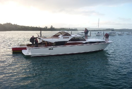 Tony Mason crafted a series of impressive boats like the ALIBI, characterised by their striking design and powerful performance, especially with the dual 6-cylinder diesel engines that presumably enhance their speed and efficiency on the water. These boats show cased both his craftsmanship and a commitment to quality, making them stand out in any marine setting. I am trying to find another of these boats, that one day was tied up to Mansion House Bay Wharf, in the early 1970s, when the boat was almost new. She was amazing as ALIBI still is today, but the thing that intrigued me most was her 2 Chrysler V8 diesels, painted red, as with Iveco or Redwing, with her stern drives painted cream. The engines looked the same as Chrysler V8 petrol engines, except they had injectors not spark plugs, they were the only two of these engines I have ever seen.