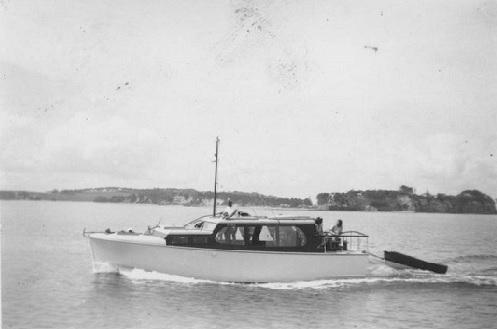 RAKANOA WITH HER 275HP HERCULES DIESEL IN NORTH HARBOUR PONUI ISLAND 1948.