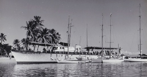 NGAROMA WITH HER 2 X 8 CYL IN LINE GLENIFFER DIESELS, TAKEN, ACTING AS MOTHER SHIP, IN A FIJI YACHT RACE IN THE 1950s
