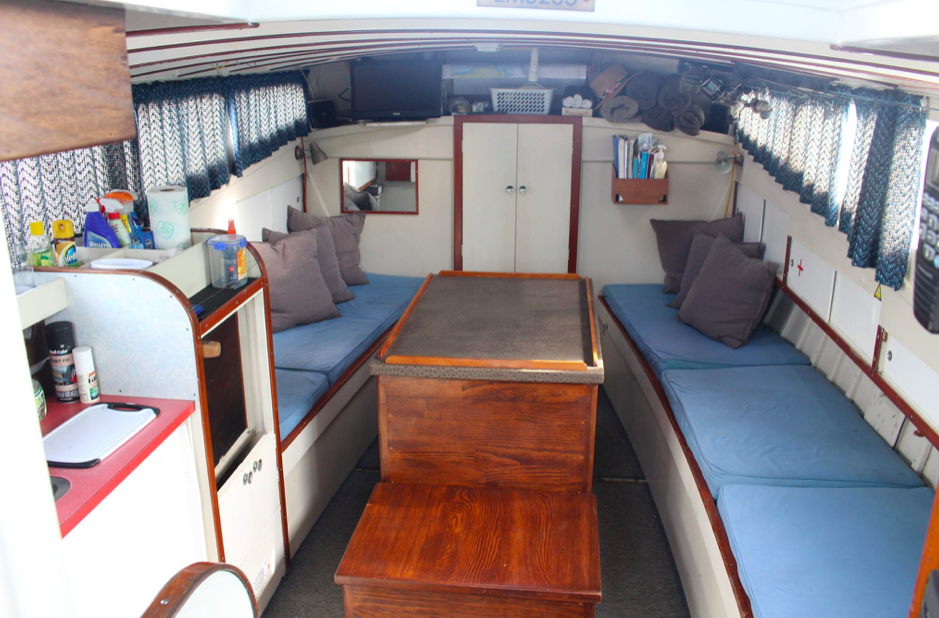 There are a couple of her showing where I got to before having to sell (as you can see she was basically back to a bare hull) and a couple of a scale model that I made of her when I was looking to see how a new cabin would look.