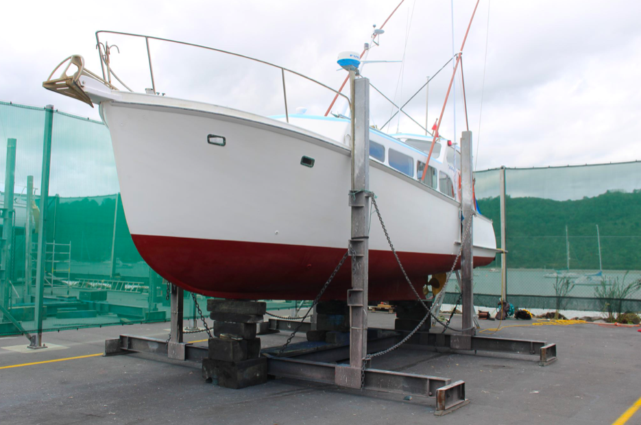 The photos above of Calypso in the water and being hauled were given to me by the previous owner.