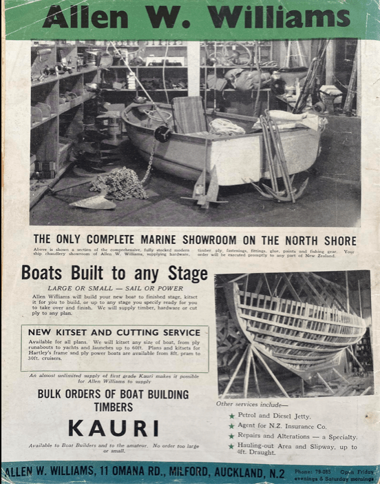 In the above photo we see Marihi ‘holding hands’ with another Allen Williams launch – Banshee. The location is Smelting House Bay at KAWAU ISLAND. The bay is the semi permanent home for Banshee, owned by David and Robyn Lee.